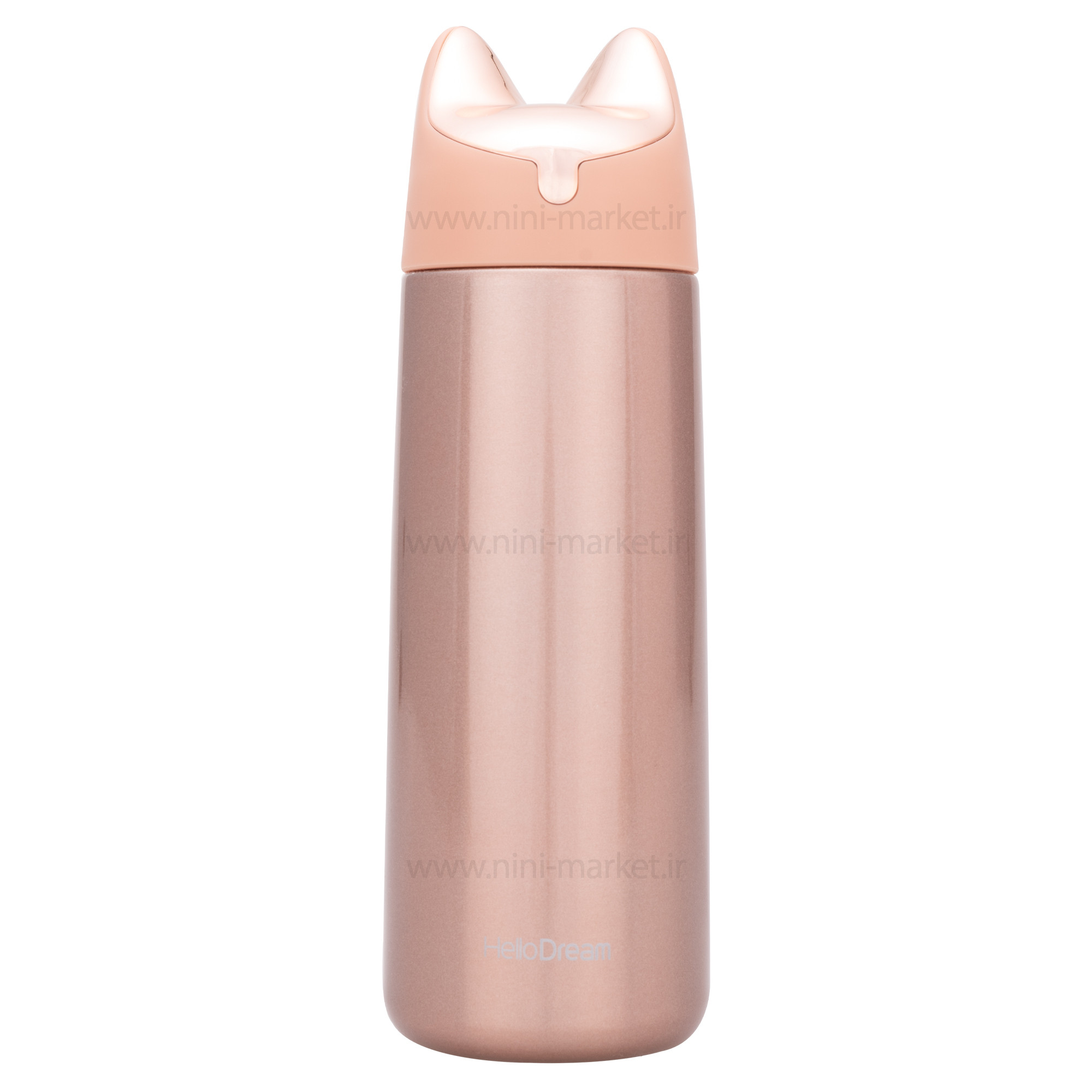 فلاسک آب استيل طرح گربه رنگ طلایی هلو دریم Hello dream