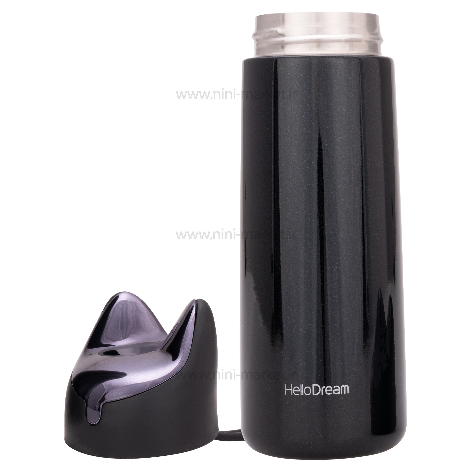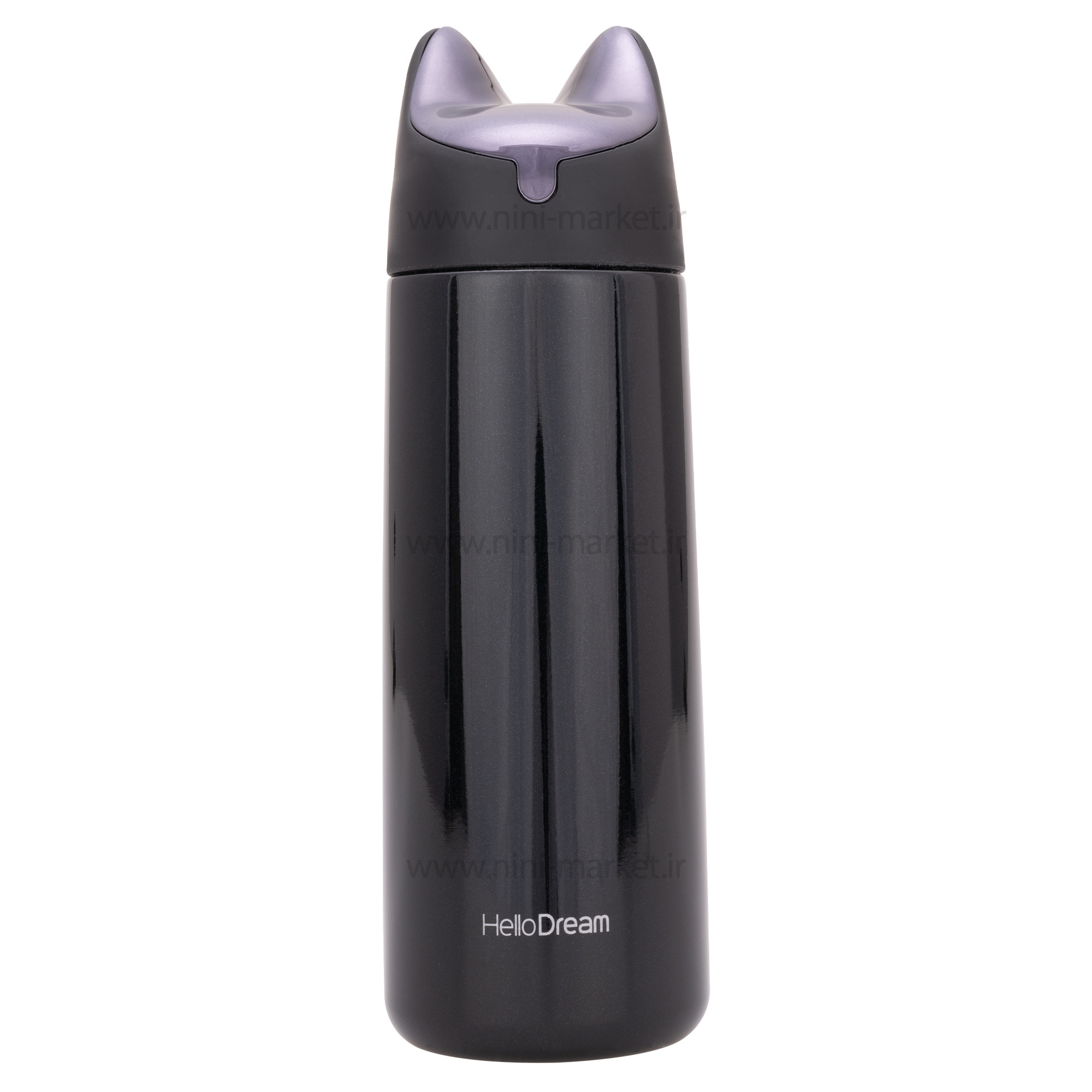 فلاسک آب استيل طرح گربه رنگ مشکی هلو دریم Hello dream