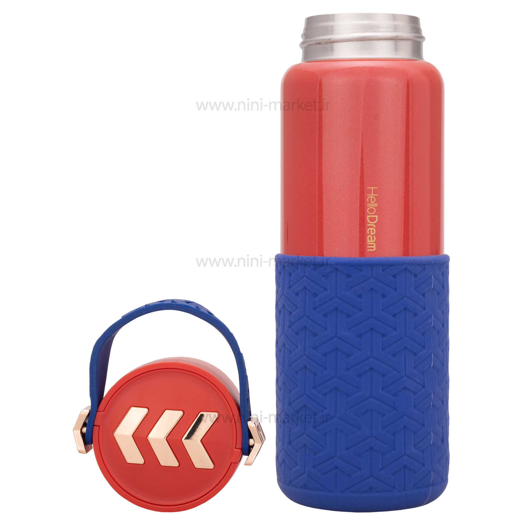 فلاسک آب استيل بنددار رنگ قرمز هلو دریم Hello dream