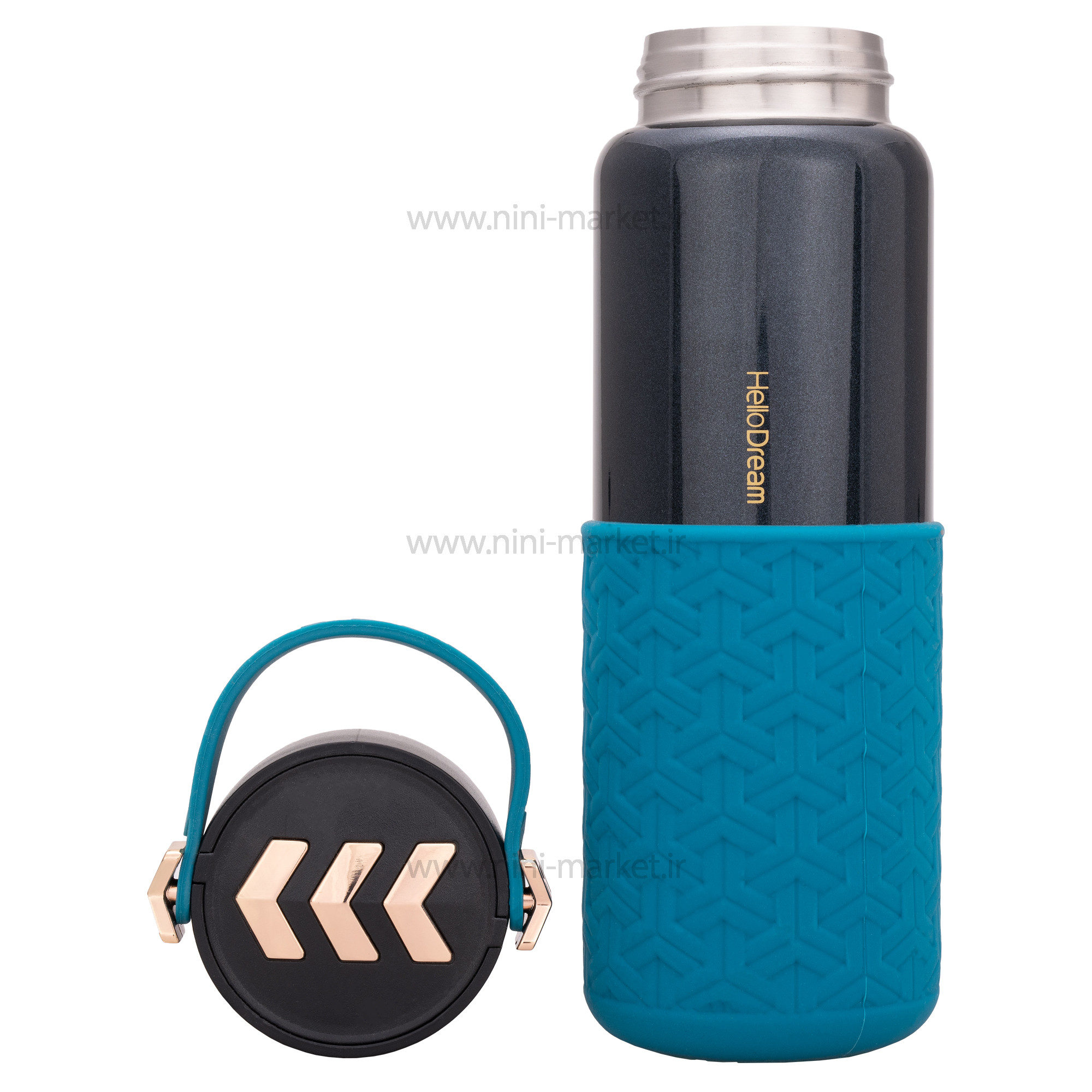 فلاسک آب استيل بنددار رنگ مشکی هلو دریم Hello dream