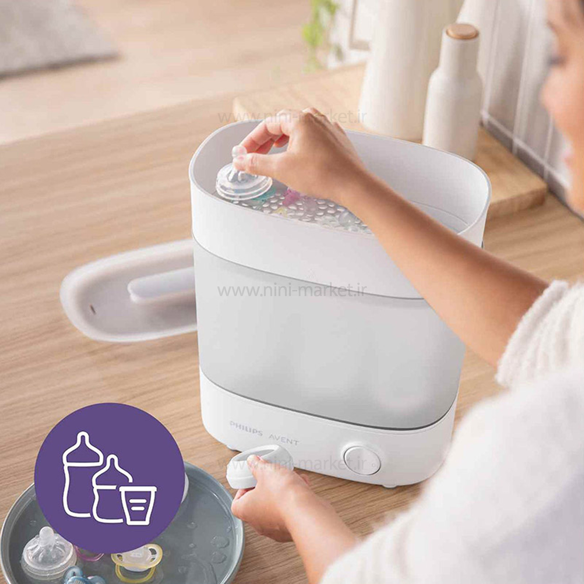دستگاه استریل Philips Avent تا شش بطری تغذیه را با لوازم جانبی تنها در 10 دقیقه استریل می کند. دستگاه ضدعفونی کننده پیشرفته بطری باریک اما جادار سریع و کارآمد است و در هر خوراکی به شما آرامش می دهد. دستگاه استریل فیلیپس بسیار ملایم، موثر و بدون مواد شیمیایی است. هر دستگاه ضدعفونی کننده از قدرت بخار خالص استفاده می کند. شیر دادن با شیشه شیر به نوزاد میتواند کار آسانی باشد، اما شستشو و استریل کردن آن، مسئلهای است که بسیاری از مادران یا به آن توجه نمی کنند و یا به راحتی نمیتوانند آن را انجام دهند. نوزادان به دلیل نداشتن سیستم ایمنی قوی، همیشه در معرض میکروبها و باکتریها هستند، بنابراین باید همیشه حواسمان به سلامتی کودکمان باشد زیرا که داشتن کودک سالم و شاد میتواند تائثیر زیادی بر روی سلامت و زندگیِ کل خانواده بگذارد. روش های بسیاری برای استریل و ضدعفونی کردن شیشهشیر، پستانک و دیگر وسایلی که نوزاد با آن سروکار دارد وجود دارد اما بدون شک مطمئن ترین و راحت ترین روش، استفاده از دستگاه های استریل کننده فیلیپس اونت است. کمپانی فیلیپس اونت این دستگاه ها را طوری طراحی که قادر اند تا ۹۹.۹٪ باکتری و میکروب ها را از بین ببرد. استریل کننده های فیلیپس اونت کار استریل را با بخار انجام میدهند. استریل با بخار مطمئن ترین و سریع ترین روش برای استریل وسایل کودک است.