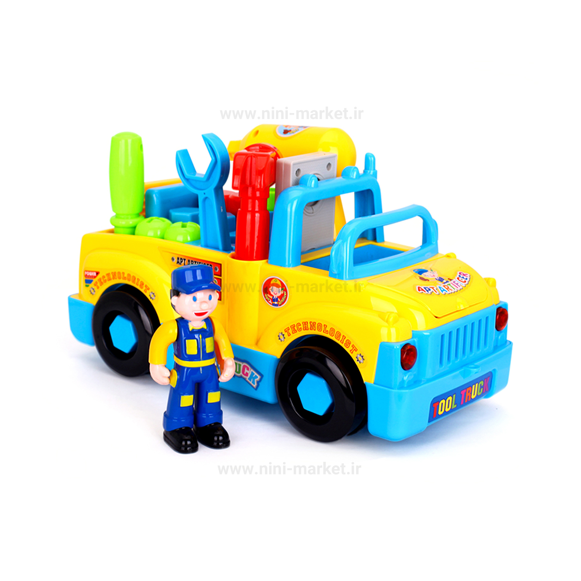 ماشین جعبه ابزار هولی تویز ابزار هایی مانند: پیچ گوشتی برقی، آچار، چکش، میخ و پیچ گوشتی امکان جداسازی موتور ماشین امکان جدا کردن لاستیکها نیاز به ۳ عدد باتری در ماشین و ۲ عدد باتری در پیچ گوشتی برقی استفاده از پلاستیک با کیفیت ABS در ساخت استفاده از رنگهای غیر شیمیایی و فاقد سرب که قابلیت پخش موزیک دارای چراغ ، مهارتهای قابل یادگیری درصورت بازی کودک با این نوع اسباببازی شناخت ابزارهای مختلف و کارایی آنها آشنایی با قطعات مختلف ماشین تقویت قدرت تخیل کودک رشد ذهنی کودک هماهنگی دست و چشم کودک تقویت قدرت حل مسئله بهبود مهارتهای حرکتی کودک تقویت قدرت و چابکی دست کودکمی شود. هولی تویز یکی از بهترین برند ها برای تولید بازی های فکری می باشد.