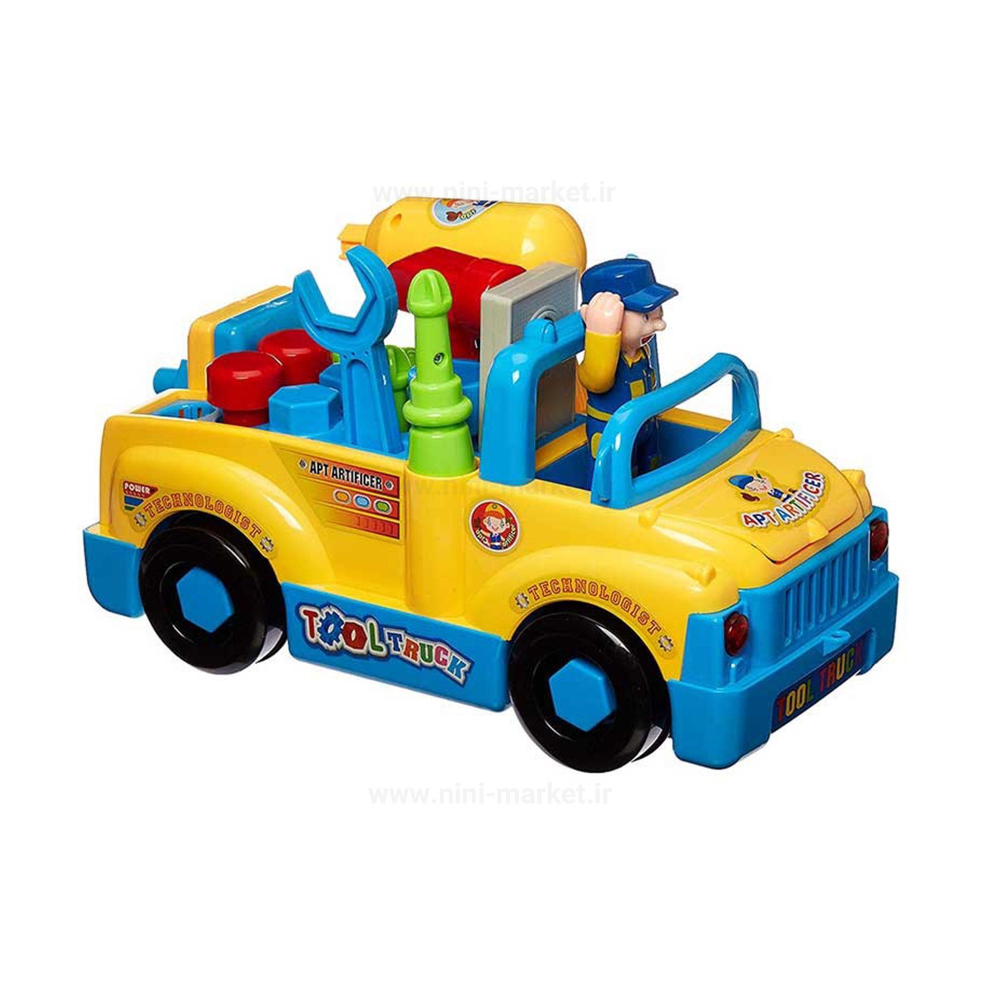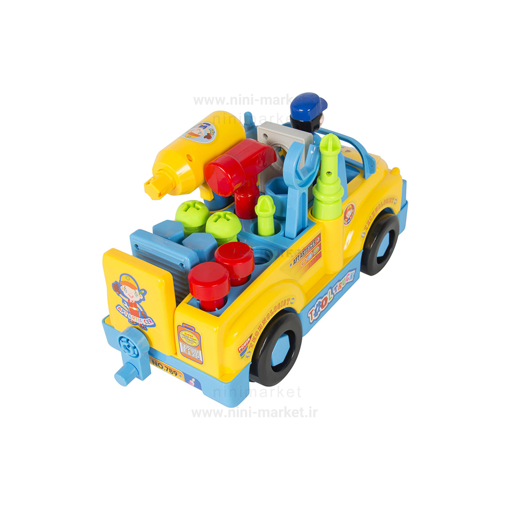 در این اسباب بازی هولی تویز یک پیچ گوشتی برای سفت کردن پیچ ها با دو سر قرار دارد. پشت ماشین مکانی مناسب برای قرار دادن ابزار ها می باشد. شیارهایی برای قرار دادن پیچها نیز وجود دارد. این اسباب بازی موزیکال است و در حین حرکت آهنگ پخش کرده و از طرفی نیز چراغهای جلوی آن نیز روشن میشوند. ماشین جعبه ابزار هولی تویز، امکان باز کردن کاپوت ماشین و در آوردن موتور به وسیله باز کردن پیچهای آن امکان پذیر است. همچین چرخهای ماشین قابلیت باز شدن و جدا شدن از ماشین را دارند. این ماشین به محض برخورد به موانع مسیر خود را تغییر خواهد داد. پیچ گوشتی برقی که در این اسباب بازی قرار گرفته است این امکان را دارد که هم به سمت چپ و هم به سمت راست بچرخد. ماشین تعمیرات و جعبه ابزار هولی تویز مناسب کودکان بالای 36 ماه برای آموزش مهارت برای آن ها طراحی شده است.