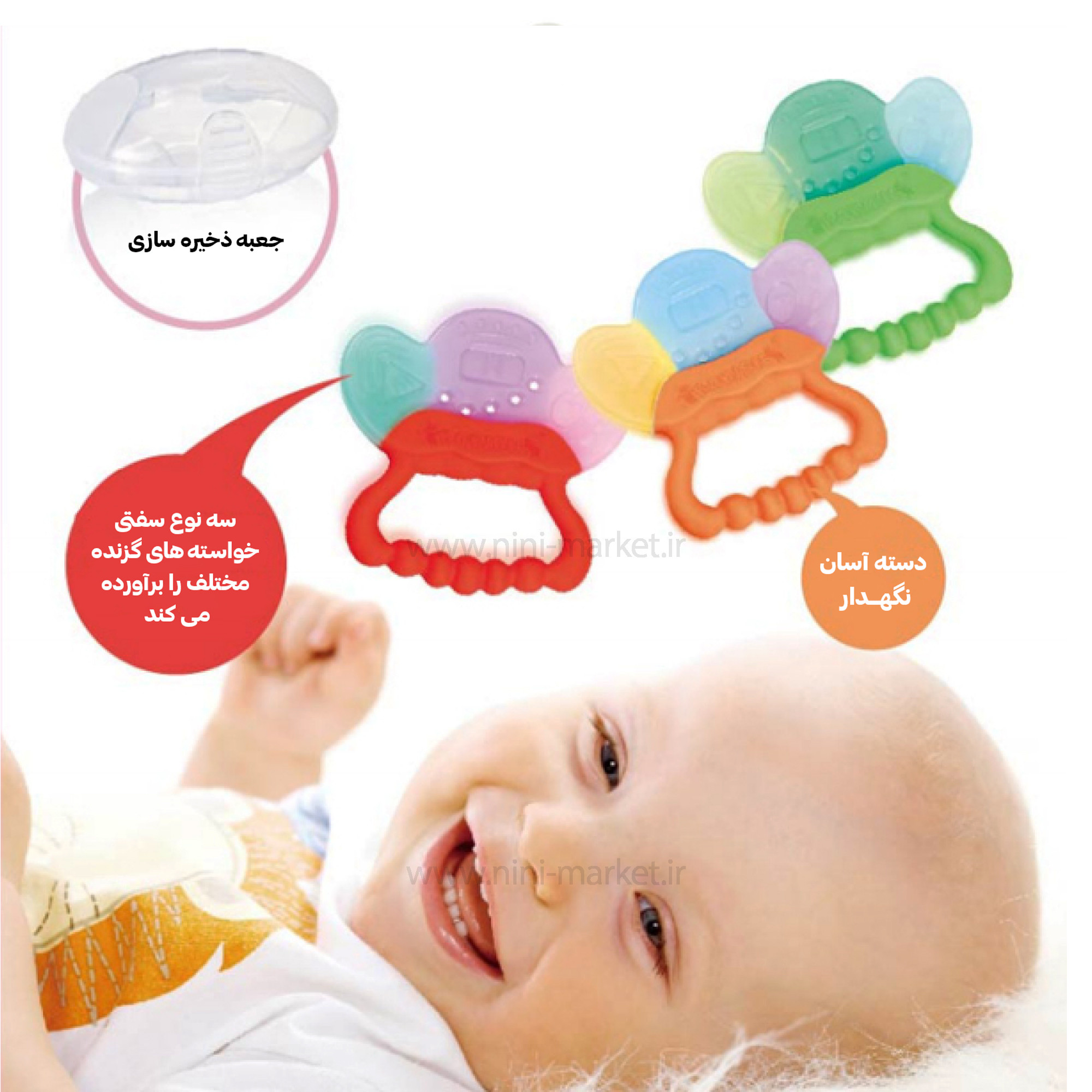 دندانگیر و ماساژر لثه با قاب رنگ نارنجی بیبی سیل Babisil یک محصول عاری از هرگونه مواد شیمیایی که برای نوزادانی که شروع به دندان در آوردن کردن مناسب است. اما در برخی نوزادان از سنین پایین تر آغاز شده و برخی دیگر تا یکسالگی هم رویش دندان ندارند. این روند طبیعی با ناراحتیهایی برای نوزاد همراه است که مهمترین آن بیقراری است. درد لثه، خارش و آبریزش دهان علائم دیگری هستند که شروع رویش دندان را نشان میدهند. بههر حال این دوره باید به هر ترتیبی که هست، طی شود و چارهای جز تحمل مشکلات جانبی آن نیست. شما تنها میتوانید برای اینکه درد و بیقراری فرزندتان را کمی تسکین دهید، از چند راهکار رایج استفاده کنید. استفاده از دندانگیر یکی از این راهکارهاست. دندانگیرها با ماساژ دادن لثه کودک احساس خارش و درد را کمتر میکنند. برای خرید دندانگیر قبل از هرچیز باید به جنس آن توجه داشته باشید که فاقد مواد مضر برای سلامتی کودک باشد. این دندانگیرها باید حدی از سختی را داشته باشند تا قابلیت ماساژ دادن لثه را پیدا کنند و در عین حال تعادلی هم میان نرمی و انعطافپذیر بودن آنها برقرار شود. دندانگیر بیبی سیل سه نوع سفتی خواسته های گزنده مختلف را برآورده می کند. با طراحی ناهموار می تواند درد یا ناراحتی دندان های در حال ظهور را کاهش دهد. دارای جعبه ذخیره سازی که کمک میکند تا دندانگیر در معرض آلودگی قرار نگیرد و از گم شدن دندانگیر جلوگیری می کند .