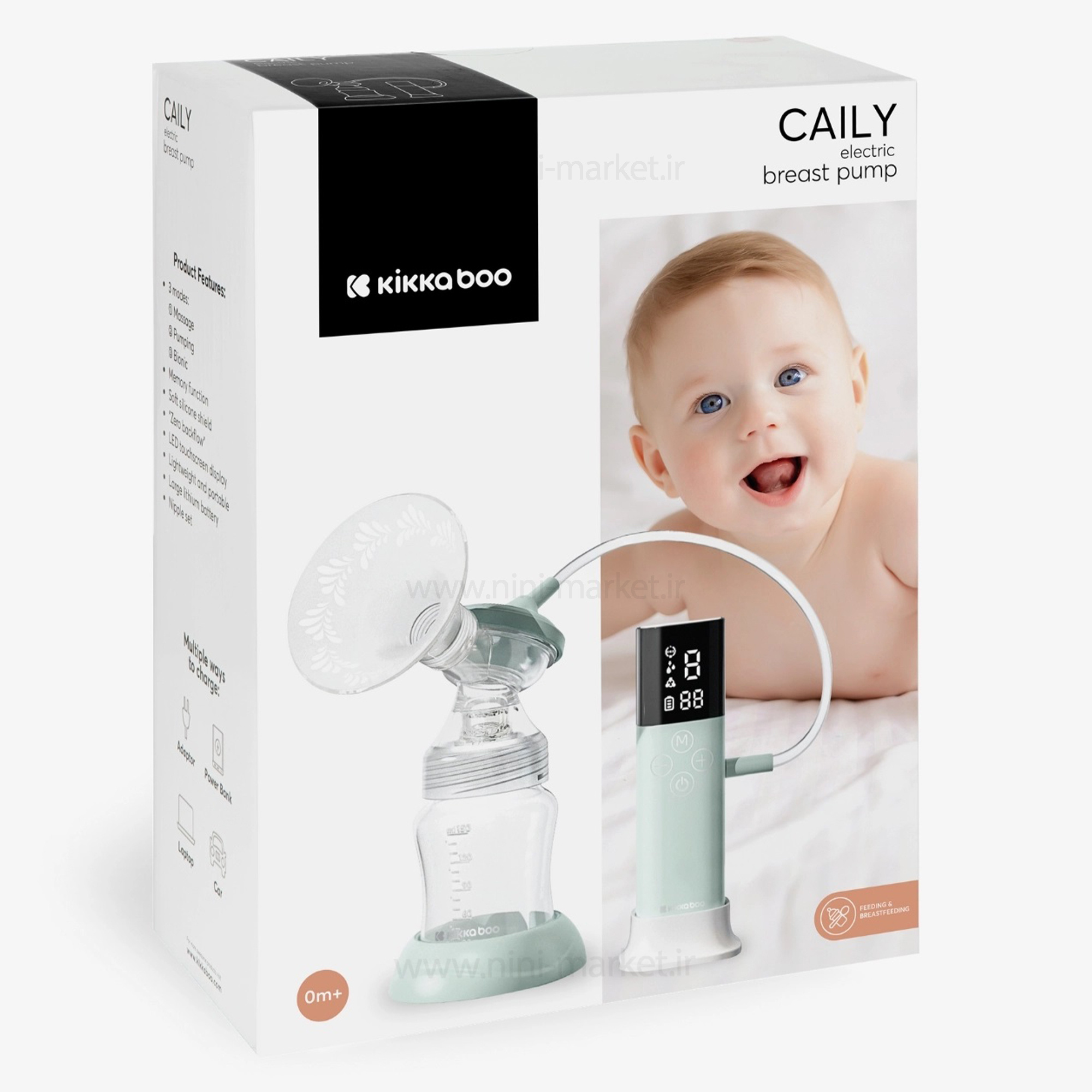 شیردوش برقی مدل Caily کیکابو یک پمپ سینه بسیار راحت و کاربردی است که برای مادرانی که در حال حرکت هستند طراحی شده است. طراحی جمع و جور آن حمل و نگهداری آن را آسان می کند. پمپ سینه یک روش مکانیکی برای جمع آوری شیر است و در مواقعی که مادر قادر به شیر دادن به تنهایی نیست و یا به هر دلیلی لازم است نوزاد را جدا کند، اغلب زمانی که مادر می خواهد به سر کار خود بازگردد، استفاده می شود.شیر دوش برقی مدل"Caily"، متعلق به شرکت Kikka Boo، برقی است و به طور ایمن روی سینه قرار می گیرد و یک مکش طبیعی ایجاد می کند. در نقطه ای احساس تحریک ایجاد می کند تا شیر را با توجه به سرعت مورد نظر مادر جمع آوری کند. همچنین دارای یک بطری یکپارچه برای جمع آوری شیر است که به راحتی تمیز و استریل می شود.1 ) تمام اجزا از سیلیکون و مواد PP، 0% BPA، غیر سمی، سازگار با محیط زیست تشکیل شده و برای کودک شما ایمن و سالم است. فن آوری ضد رفلاکس از برگشت شیر مادر جلوگیری می کند تا از آسیب موتور یا نشت شیر جلوگیری کند و هر قطره شیر شما را در شیشه شیر مادر جمع کند. به گونه ای طراحی شده است که تجربه تغذیه برست شما را ایمن کند. 2) قابلیت استفاده آسان: دکمه روشن/خاموش را فشار دهید تا به طور خودکار حرکت آرام ماساژ برای تحریک تخلیه شیر شروع شود و سپس سطح شدتی را انتخاب کنید که آرامش بیشتری را فراهم می کند. فن آوری بیان 4 فاز باعث می شود فرآیند زمان کمتری را صرف کند. پمپ سینه 2 در 1 به شما انعطاف و راحتی بیشتری را در استفاده از تک یا دو بیان ارائه می دهد. به همین دلیل است که با دو نوع TUBE ارائه می شود تا با توجه به راحتی خود یکی را انتخاب کنید. 3) حالت ها و مکش های چندگانه: دارای 3 حالت کخ همراه با چندین درجه قابل تنظیم برای رفع نیازهای مادر می باشد. این روشها یا فرکانسهای پمپاژ میتواند به مادران برای تسکین درد، بهینهسازی شیردهی و شیردهی با حداکثر راحتی کمک کند. مکش قوی ملایم آن درست مانند مکیدن دهان کودک است که شیر را حتی از نوک سینه های اوج می گیرد. مونتاژ/جدا کردن و تمیز کردن هر جزء آسان است. 4) قابل حمل و قابل شارژ: وزن سبکی دارد و بنابراین حمل آن در کیف دستی یا حتی کیف پول آسان است. از کابل USB ارائه شده برای شارژ مجدد آن از طریق پاوربانک، لپتاپ، شارژر ماشین یا استفادهکننده استفاده کنید. پمپ پستان با 2 ساعت شارژ 90 دقیقه کار می کند. این ویژگی به مادران پرمشغله اجازه می دهد تا هر زمان که برای تغذیه نوزادشان وقت پیدا کردند، شیر را پمپاژ و ذخیره کنند. 5) صفحه نمایش SUPER QUITE & LCD: صفحه نمایش LCD با وضوح بالا برای نمایش حالت ها، سطوح ماساژ و مکش، زمان و وضعیت باتری است و کار با آن بسیار آسان است. این پمپ سینه هوشمند می تواند تنظیمات قبلی را برای پشتیبانی از الگوهای شیردهی شما بازتولید کند. فوق العاده کامل است و نویز کمی زیر 50 دسی بل است که برای گوش ها آزاردهنده نیست و هیچ کس را در اطراف مزاحم نمی کند.