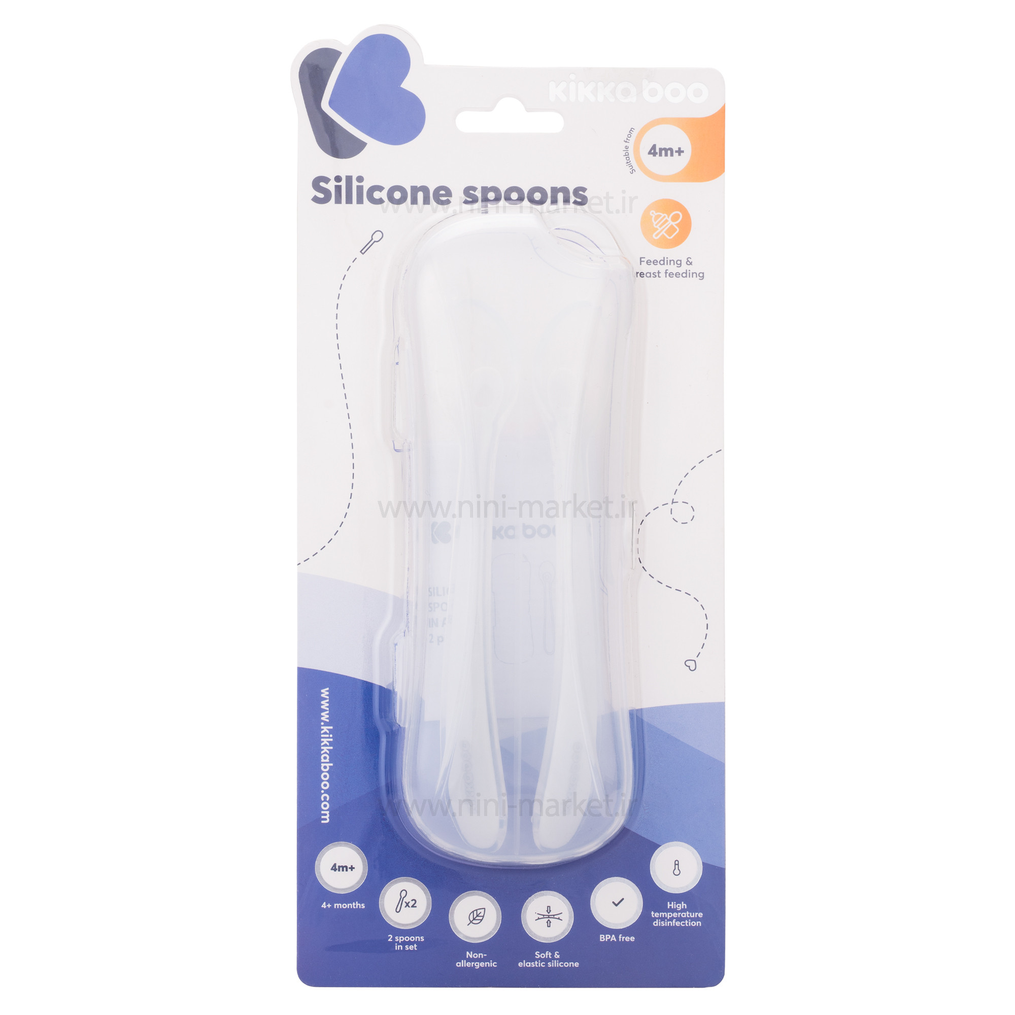 قاشق سيليکوني دو عددي همراه با قاب رنگ طوسی کیکابو kikaboo
