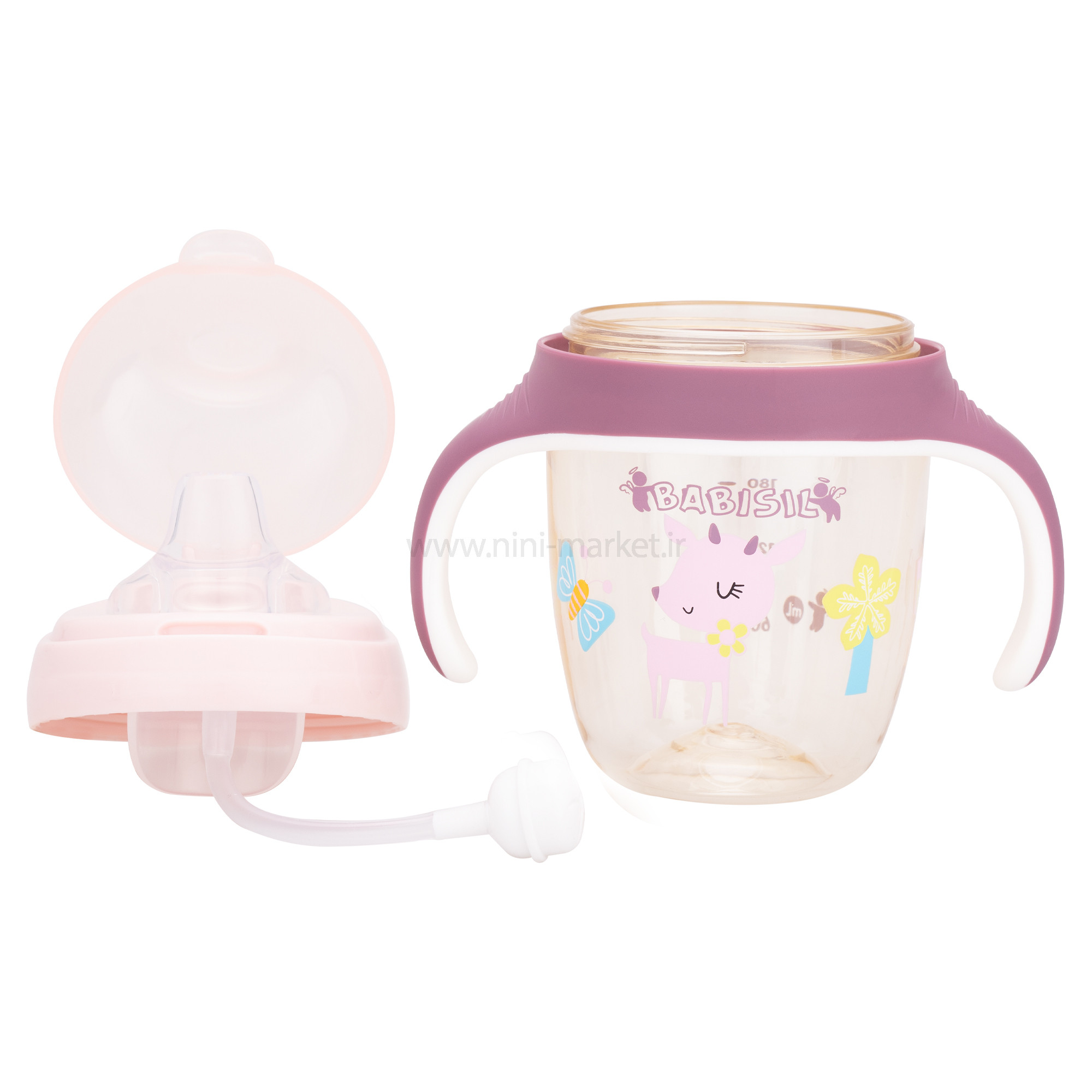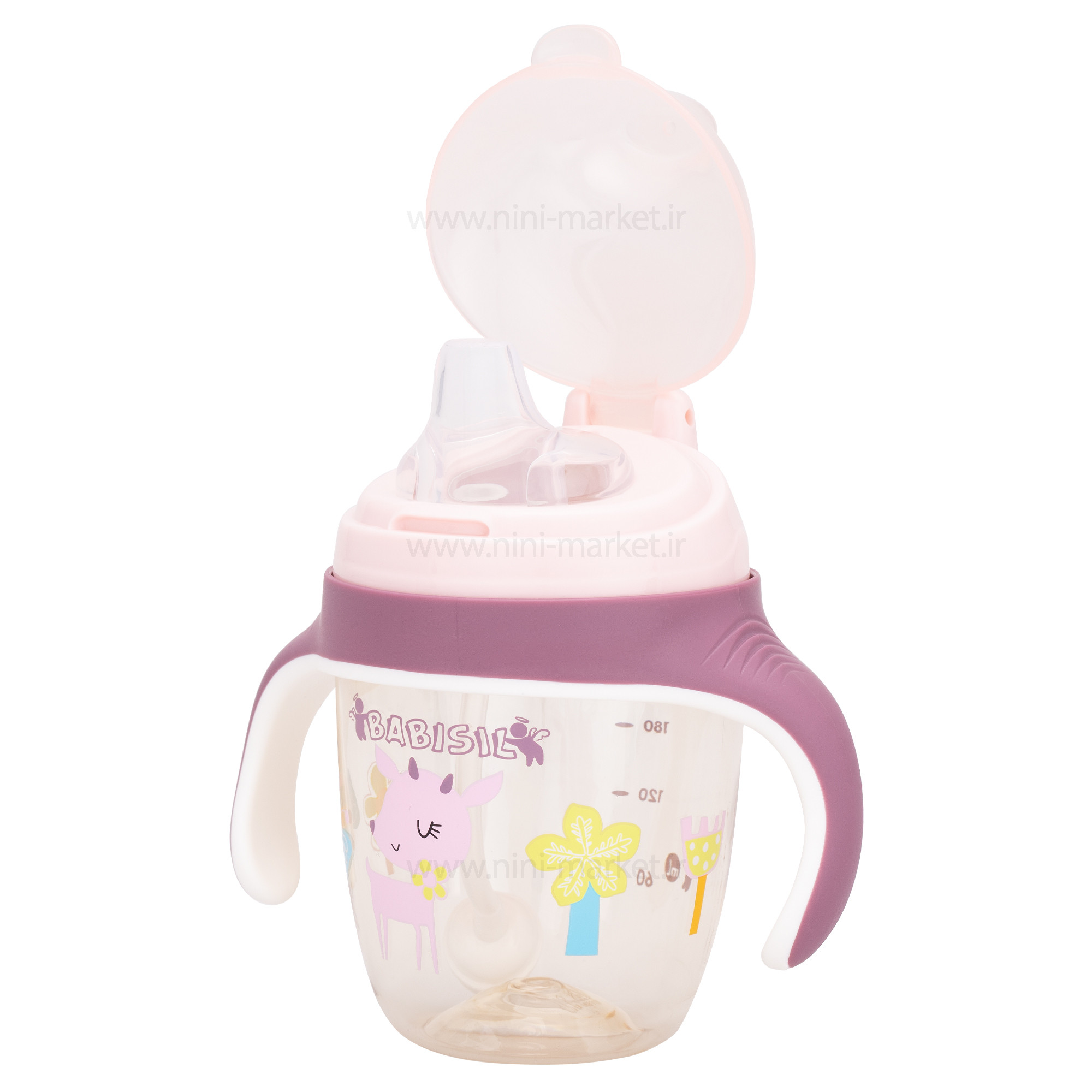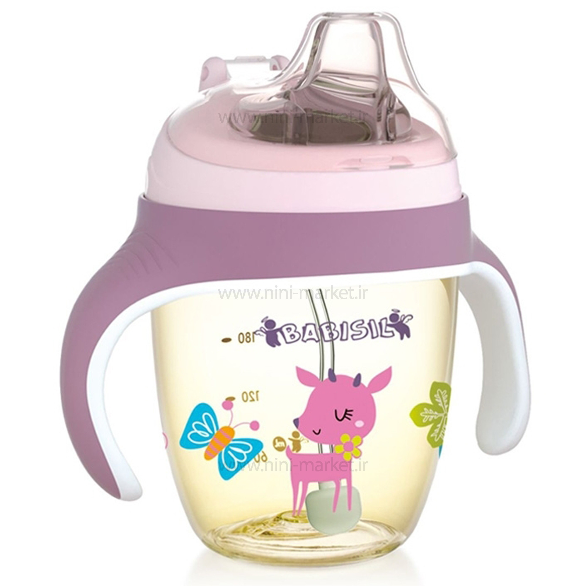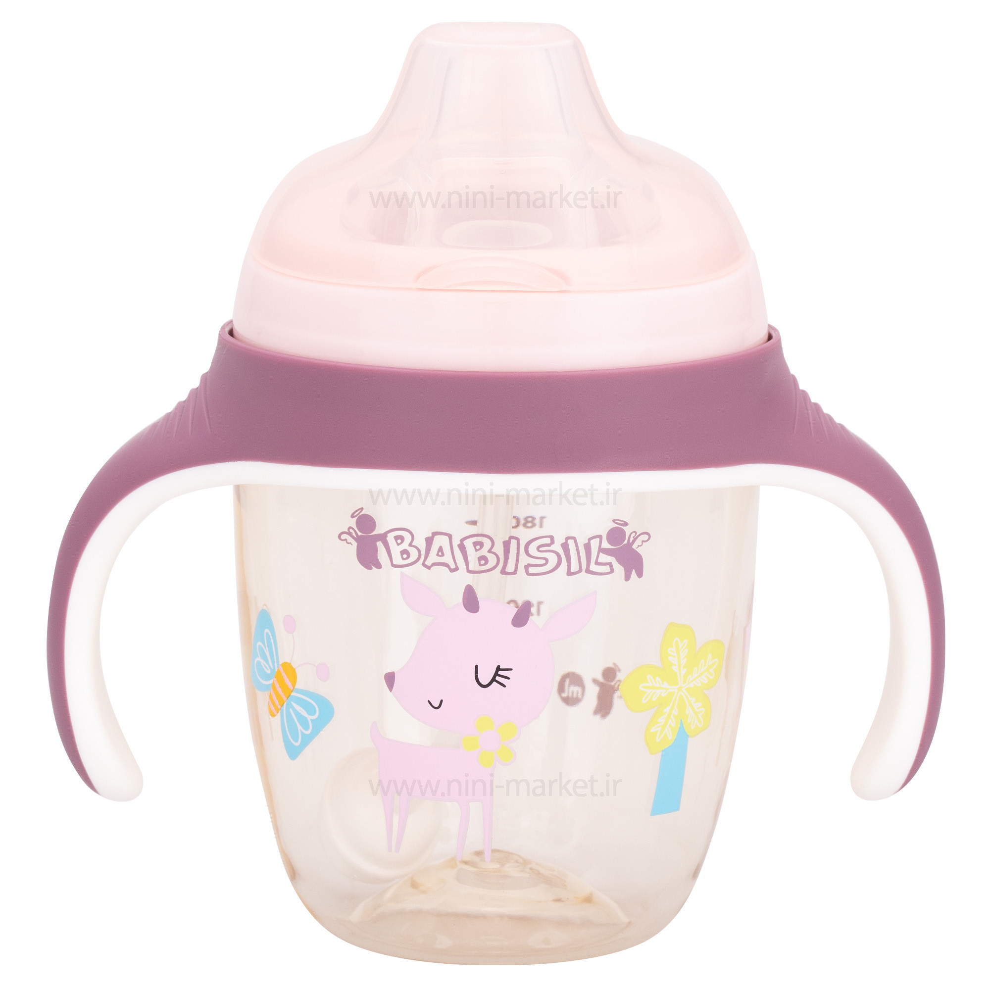 لیوان سوپاپ دار طرح آهو رنگ بنفش بیبی سیل Babisil
