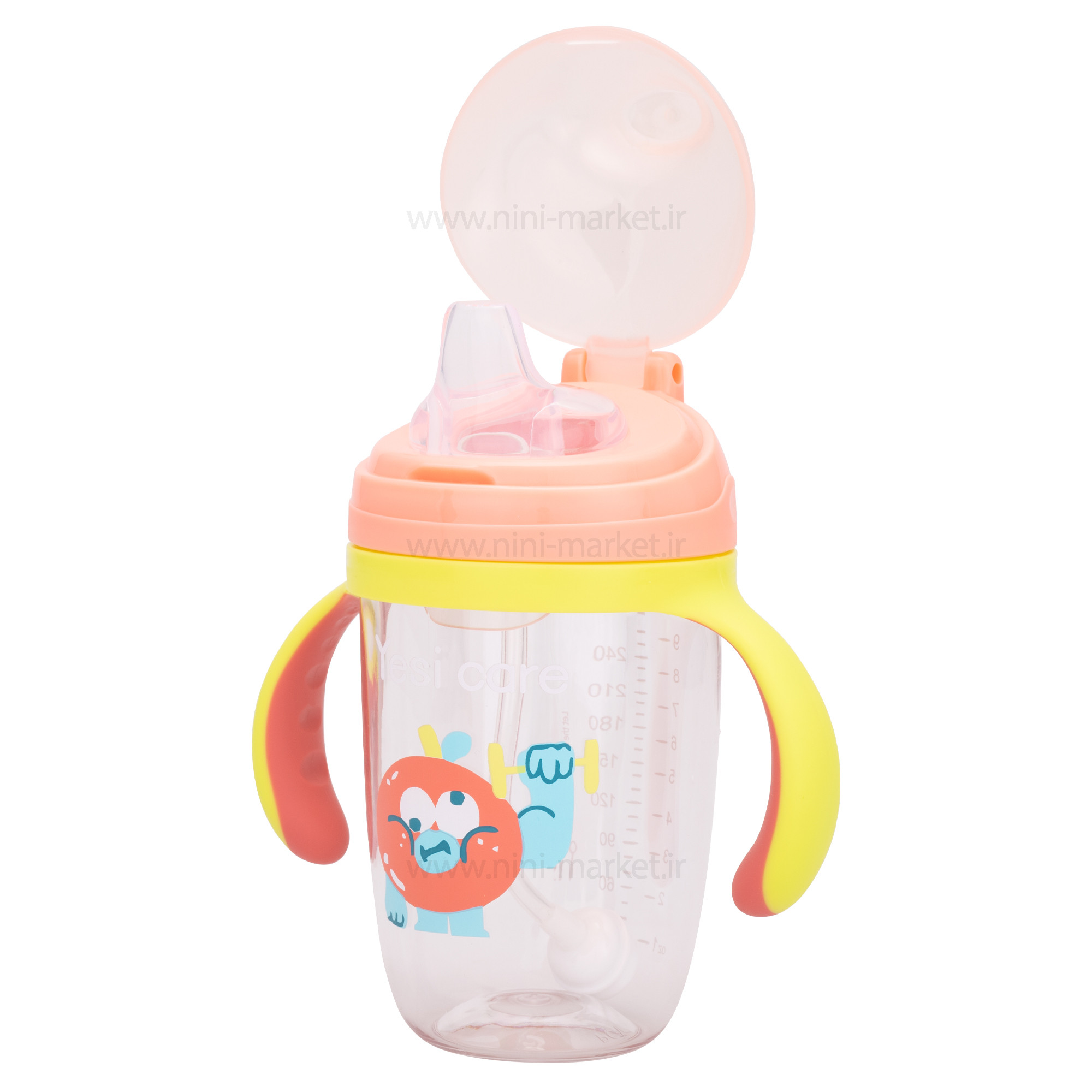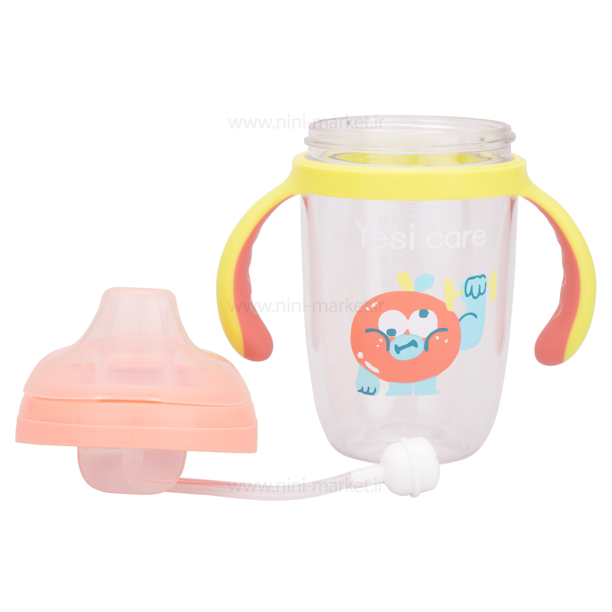 ویژگی لیوان سوپاپ دار نی دار طرح پرتقال رنگ صورتی-زرد Yasi Care