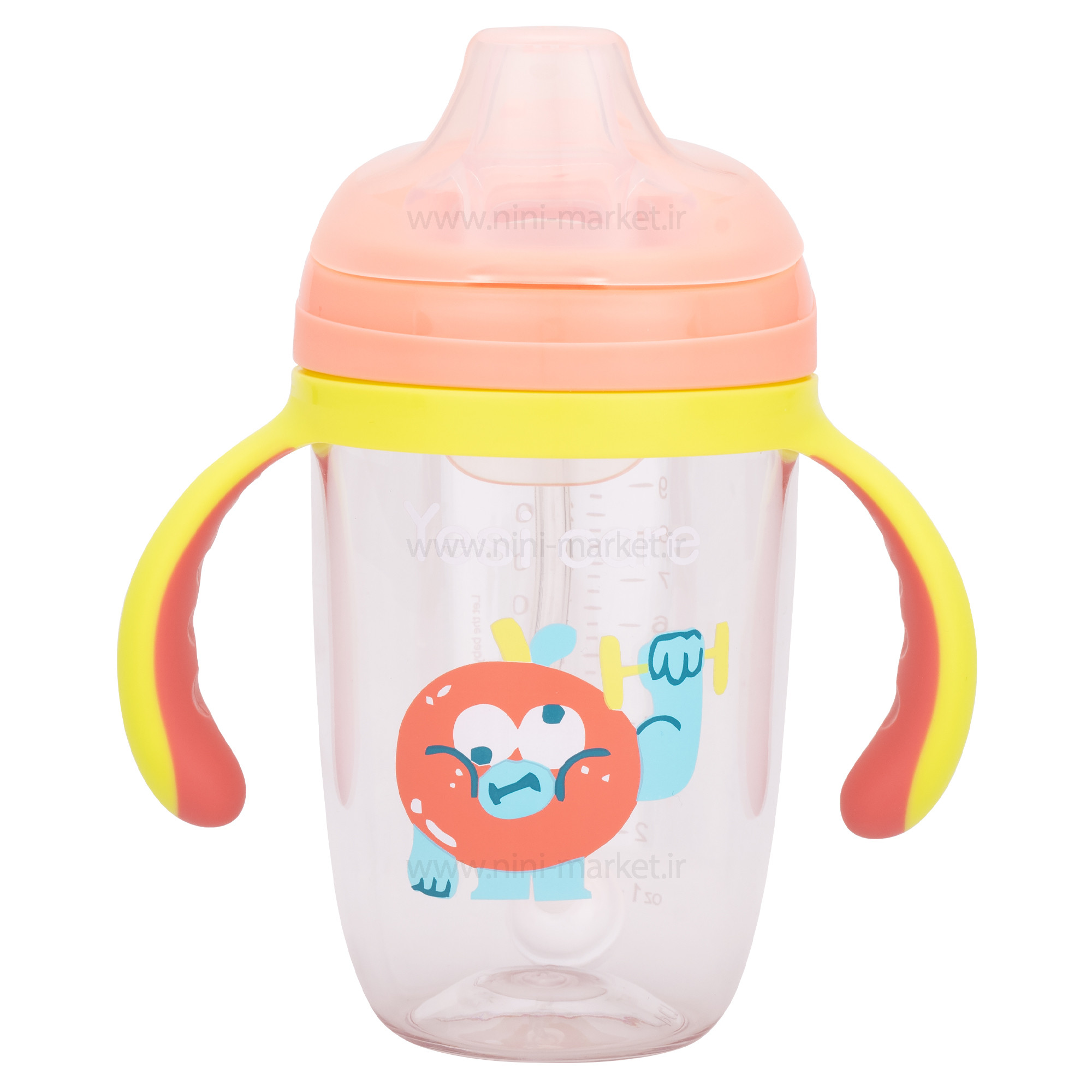 لیوان سوپاپ دار نی دار طرح پرتقال 280 میل رنگ صورتی-زرد Yasi Care