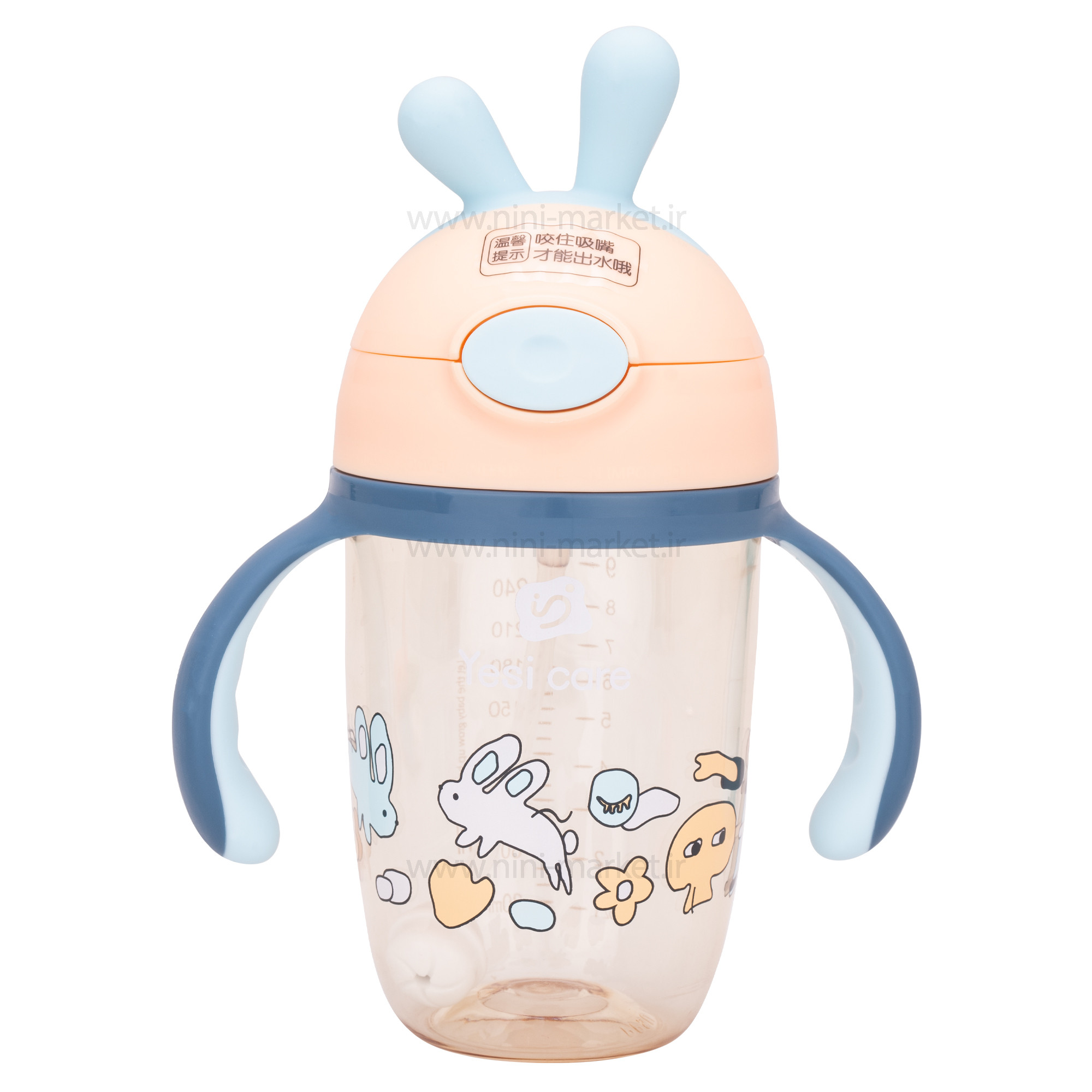 لیوان نی دار دسته دار طرح خرگوش 300 میل رنگ سرمه ای - گلبهی Yasi Care