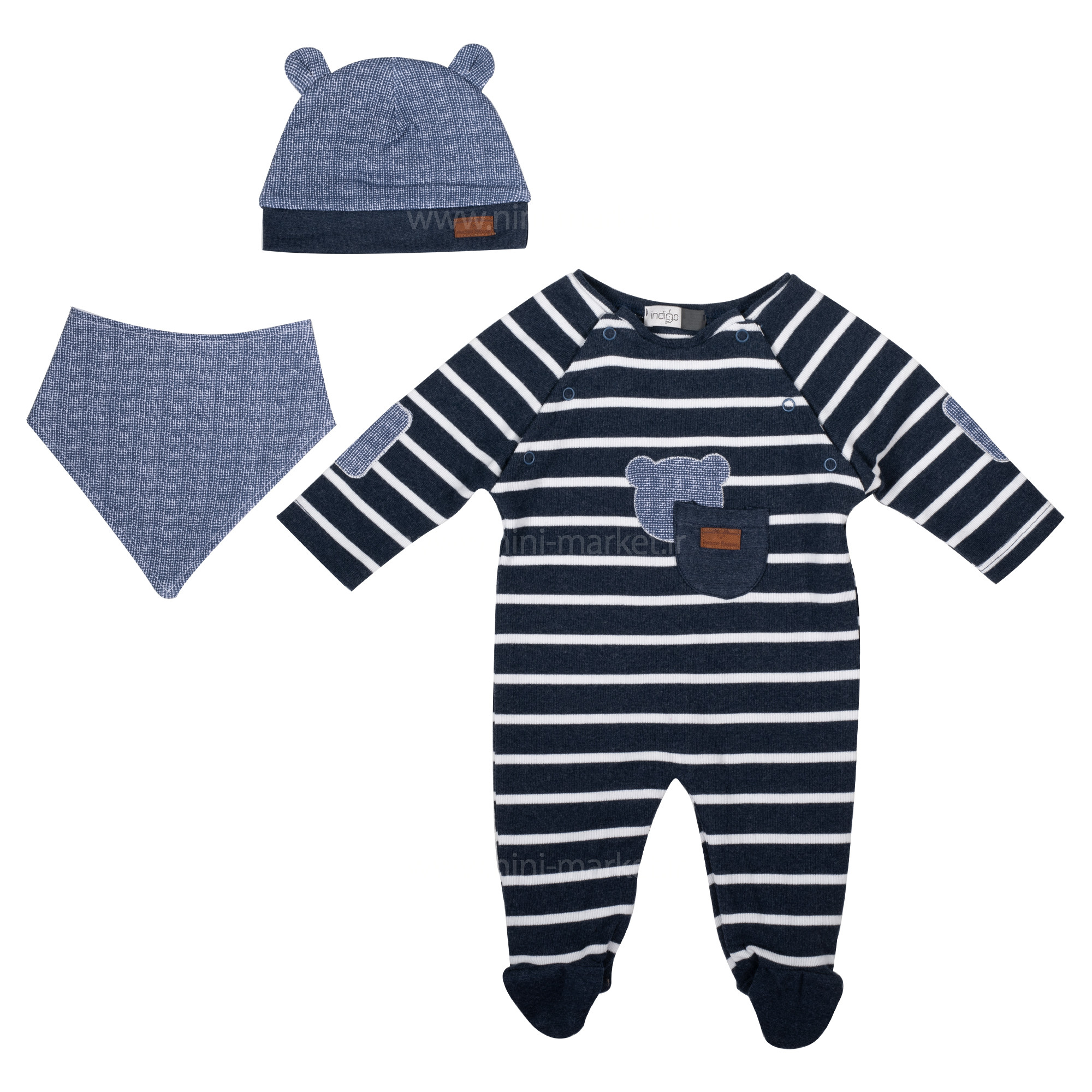 سرهمی پسرانه طرح خرس با کلاه و پیشبند ایندیگو indigo