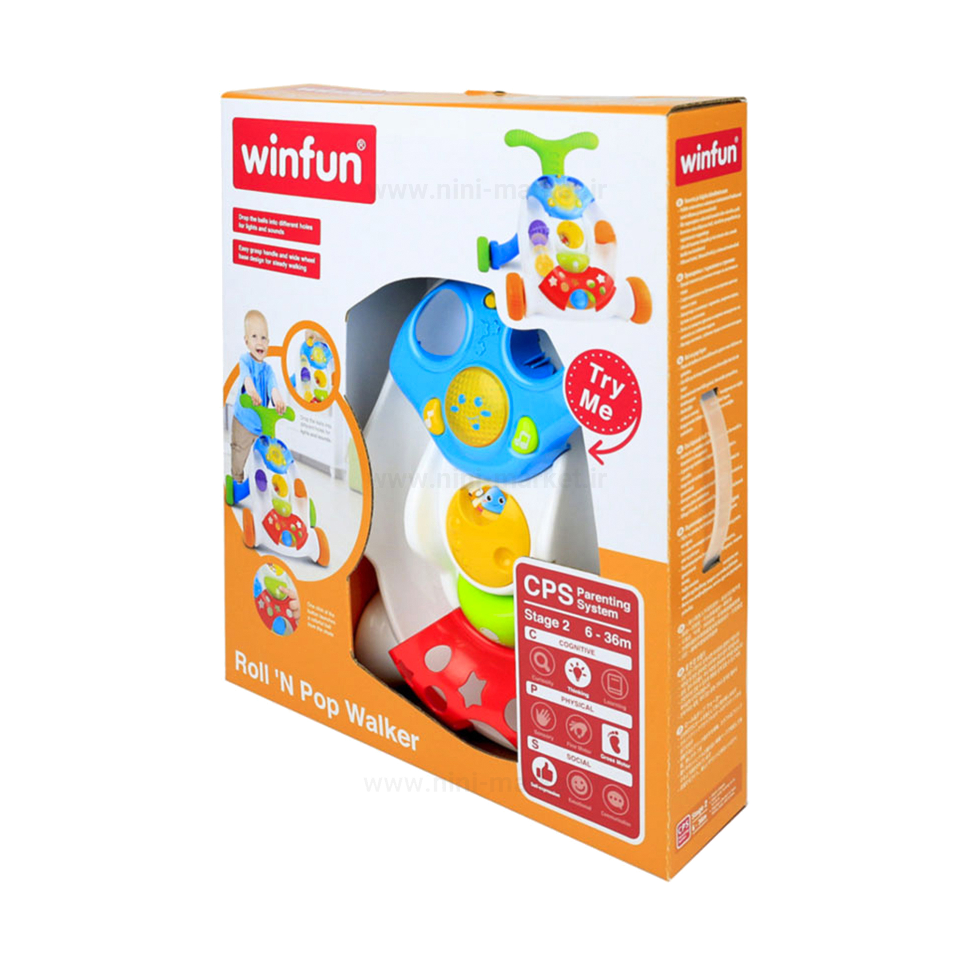 این واکر با چراغ های چشمک زن، صداهای سرگرم کننده و ملودی های شاد کودک را جذب خواهد کرد. این واکر دارای چند توپ رنگارنگ است و کودک می تواند توپ ها را برای ایجاد نور و صدا به سوراخ های مختلف بیندازد. همچنین واکر دارای یک دسته است که به کودک برای ایستادن و تعادل کمک می کند. واکر کودک موزیکال وین فان مناسب برای کودکان نوپا این واکر با طراحی جذاب یه وسیله بسیار جذاب و مناسب به جای روروئک می باشد.