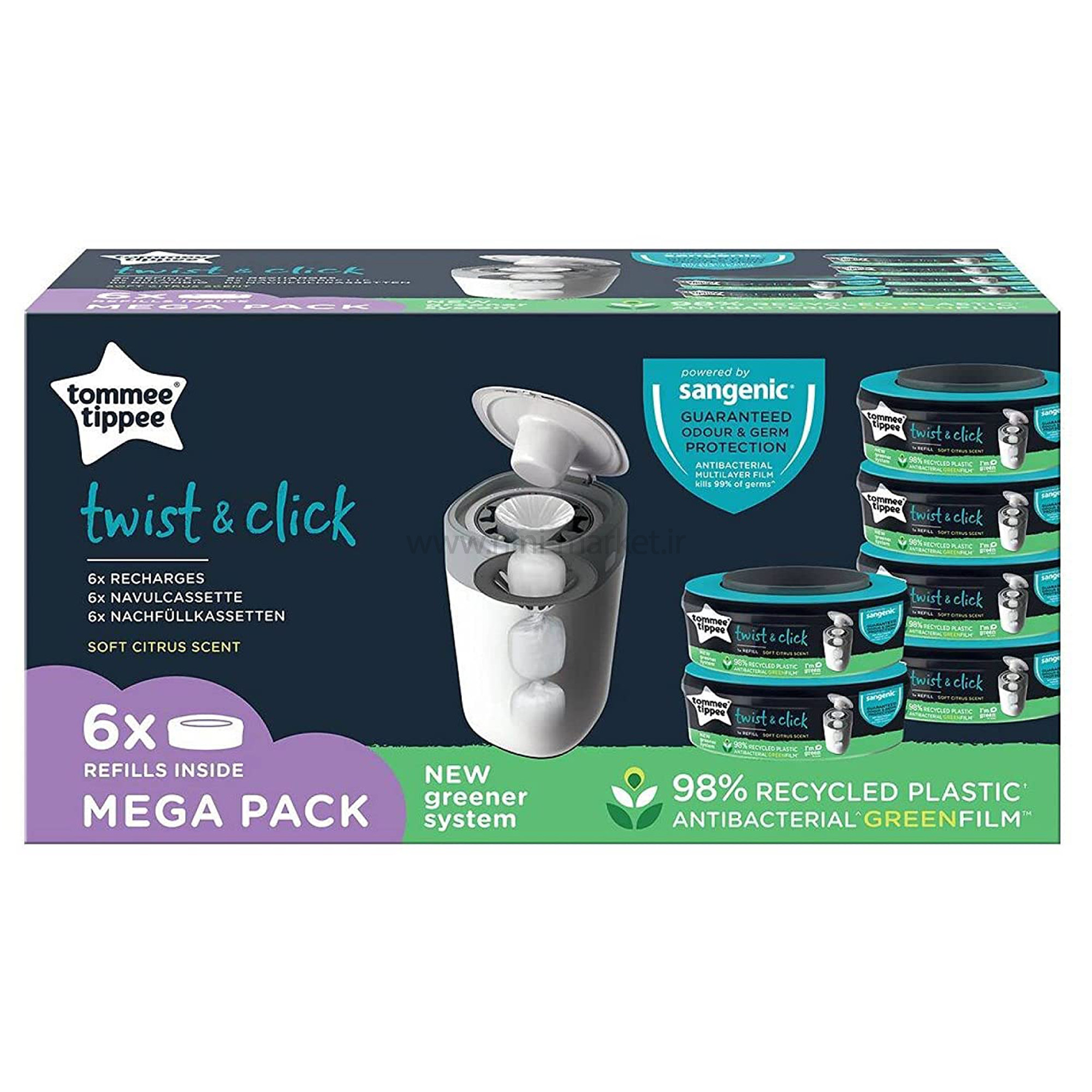 کاست های مخصوص سطل تعویض پوشک تامی تیپ دارای عملکرد بهینه و محافظت تضمین شده در برابر بوها و میکروبها، فقط باید از کاستهای پرکننده مجدد Twist & Click اصلی برای سطل پوشک Twist & Click خود استفاده کنید. کاست های پرکننده Twist & Click فقط در سطل های پوشک Twist & Click و Sangenic TEC قرار می گیرند. این پرکنندهها برای سطلهای پوشک Simplee Sangenic مناسب نیستند. ما سیستم های دفع پوشک Twist & Click خود را سازگارتر با محیط زیست و پایدارتر می کنیم. نوارهای پرکننده مجدد ما اکنون از 98٪ پلاستیک بازیافتی ساخته شده و دارای یک GREENFILM ضد باکتری جدید هستند. ممکن است متوجه شوید که رنگ و بافت کمی متفاوت است، اما مطمئن باشید GREENFIL جدید ما هنوز به همان اندازه غلیظ است، بوها را مسدود می کند و 99.9٪ از میکروب ها را از بین می برد. به دلیل این تغییرات، ما ردپای کربن خود را تا 53٪ کاهش داده ایم، همانطور که توسط یک نهاد گواهی مستقل تایید شده است. از ویژگی و عمل کرد آن میتوان به چند موارد مهم اشاره کرد از جمله :