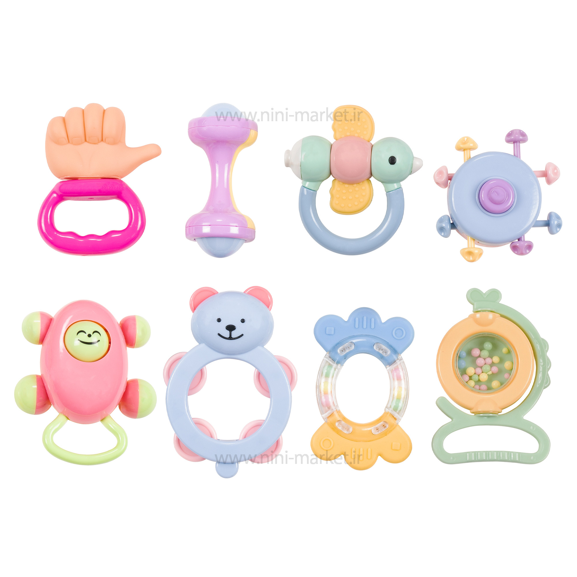پک جغجغه طرح جغد مجموعه ای از انواع جغجغه های مختلف رنگارنگ کوچک و جذاب برای نوزاد دلبندتان است . این پک جغجغه دارای 8 جغجغه جذاب با شکل های متنوع رنگی است . شامل 1 دندانگیر جغجغه ای با طراحی بسیار جذاب و فانتزی است . این بازی موجب تقویت مهارت های حرکتی ، تقویت حس شنوایی و بینایی میشود . به دلیل فرم و سایز آن ها کودک میتواند به راحتی در دست بگیرد و مشغول بازی شود . ترکیبی از رنگ های مختلف که باعث میشود کودک سریع تر روی شناخت رنگ ها گام بردارد.