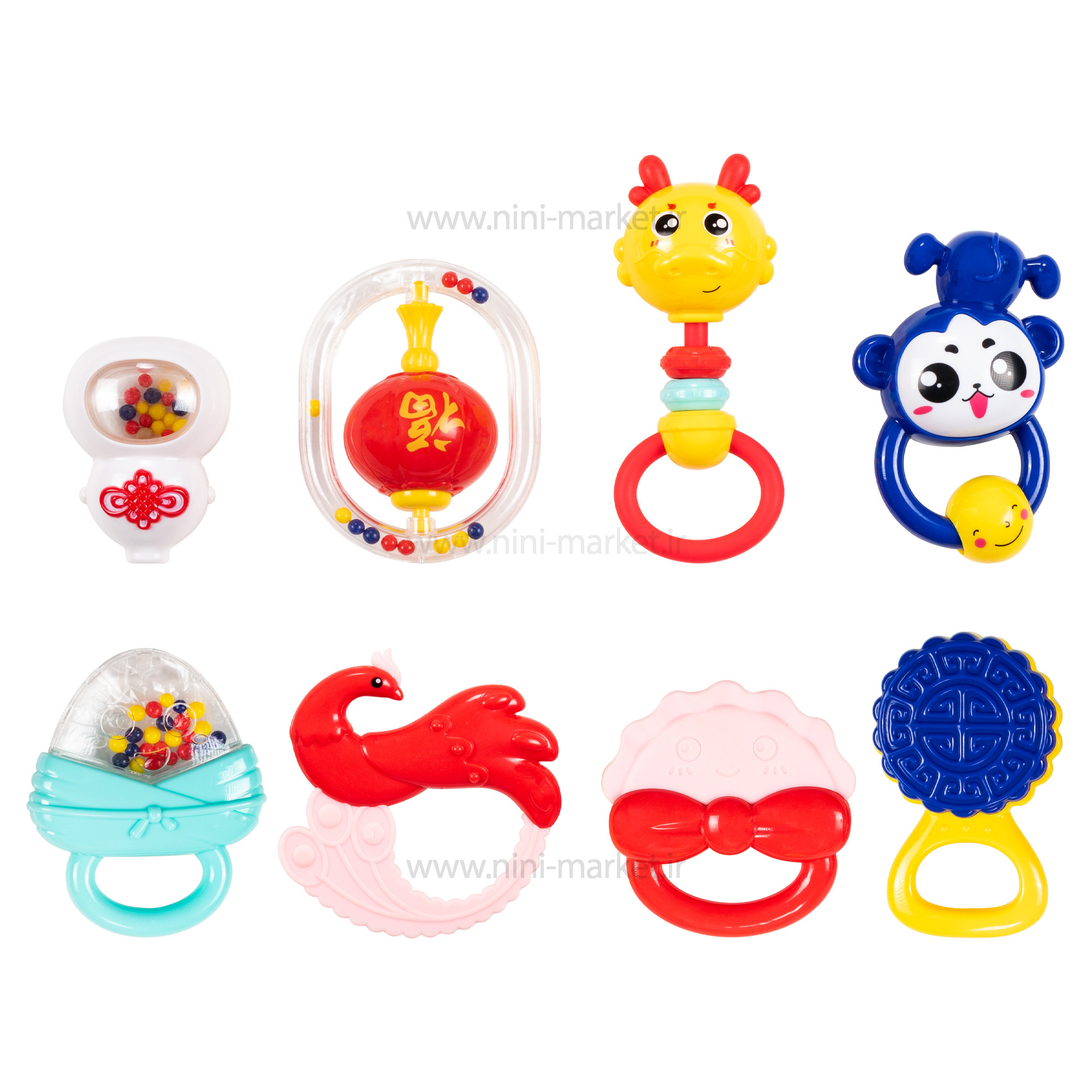 پک جغجغه طرح پاندا مجموعه ای از انواع جغجغه های مختلف رنگارنگ کوچک و جذاب برای نوزاد دلبندتان است . این پک دارای 8 جغجغه جذاب با شکل های متنوع رنگی است . شامل 2 دندانگیر با طراحی بسیار جذاب و فانتزی است . این بازی موجب تقویت مهارت های حرکتی ، تقویت حس شنوایی و بینایی میشود . به دلیل فرم و سایز آن ها کودک میتواند به راحتی در دست بگیرد و مشغول بازی شود . ترکیبی از رنگ های مختلف که باعث میشود کودک سریع تر روی شناخت رنگ ها گام بردارد.