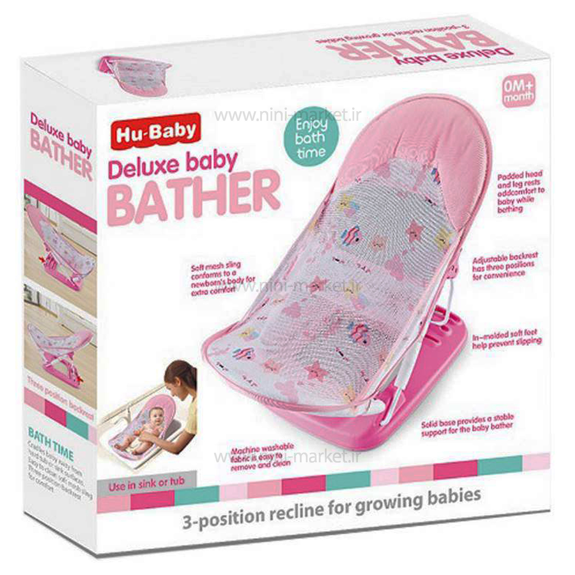 آسان شور رنگ صورتی HuBaby محصولی عالی برای حمام کردن نوزاد است. پد قابل شستشو در ماشین لباسشویی است که به راحتی جدا می شود. پایه محکم یک تکیه گاه پایدار برای حمام کننده نوزاد فراهم می کند. پایه های نرم قالب گیری شده به جلوگیری از لیز خوردن کمک می کند. تکیه گاه های بالشتکی سر و پا باعث راحتی کودک در هنگام حمام کردن می شود. پشتی قابل تنظیم دارای سه موقعیت برای راحتی است.