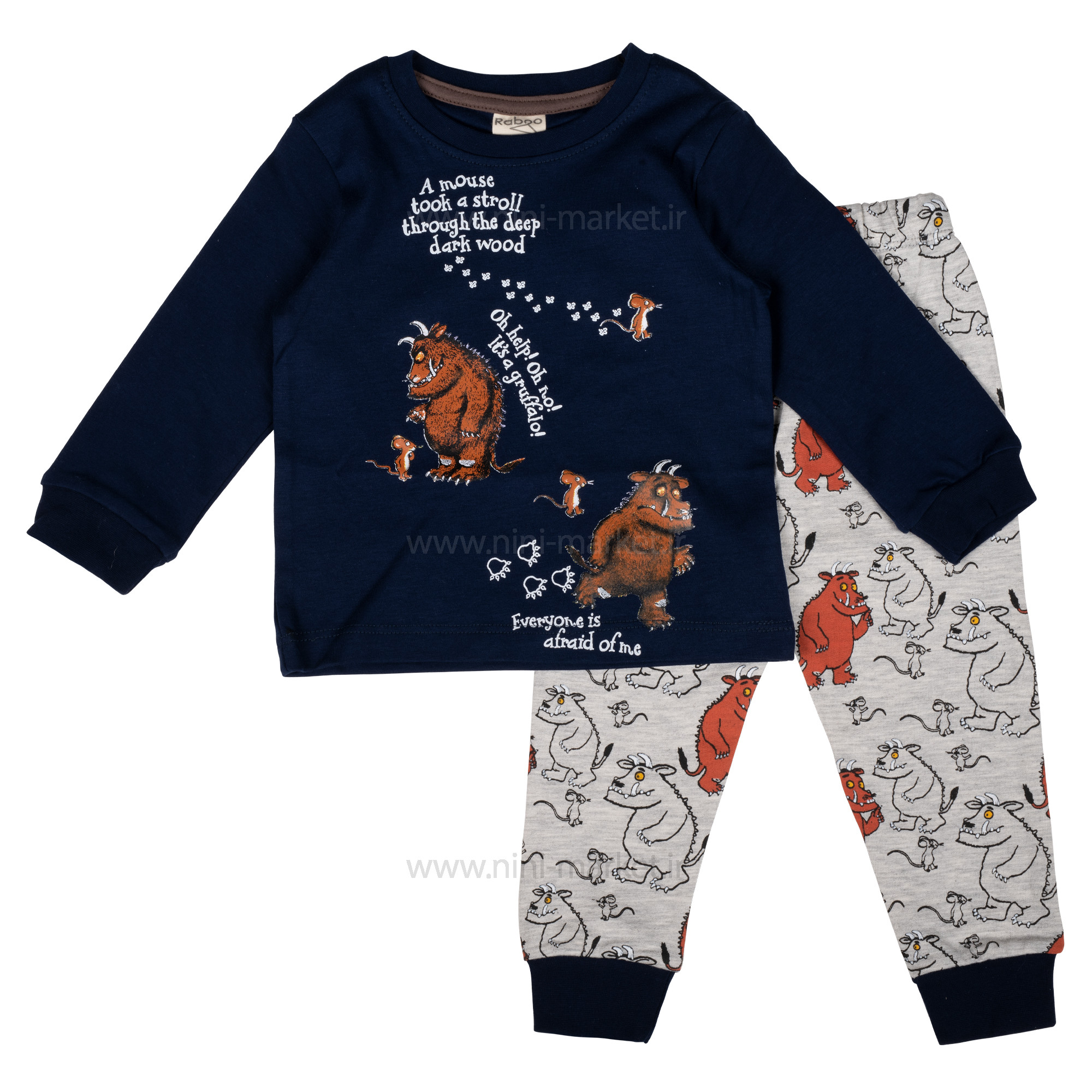 بلوز شلوار پسرانه طرح هیولا و موش سرمه ای رابو Raboo