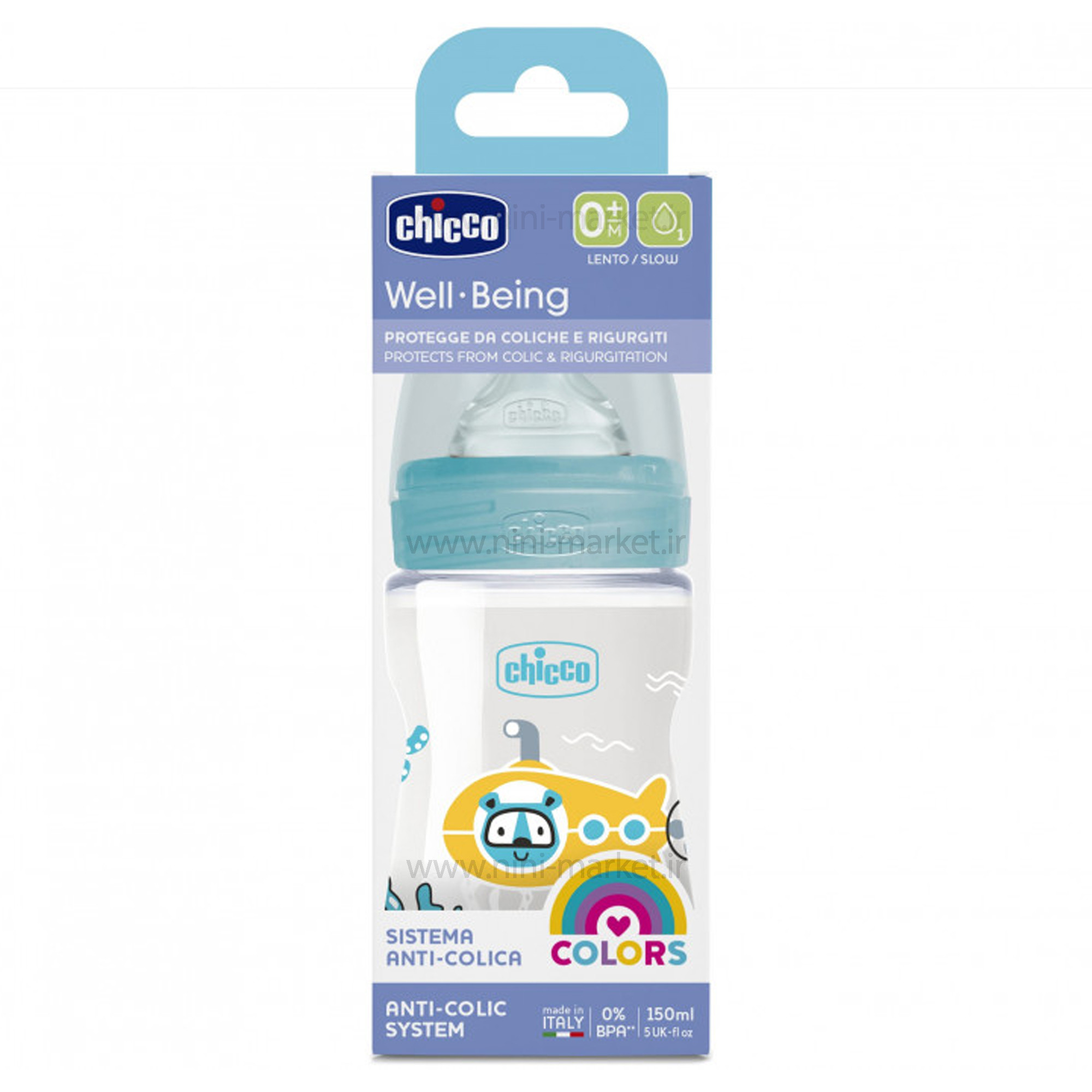 شیشه شیر ول بینگ 150 میل رنگ آبی چیکو Chicco