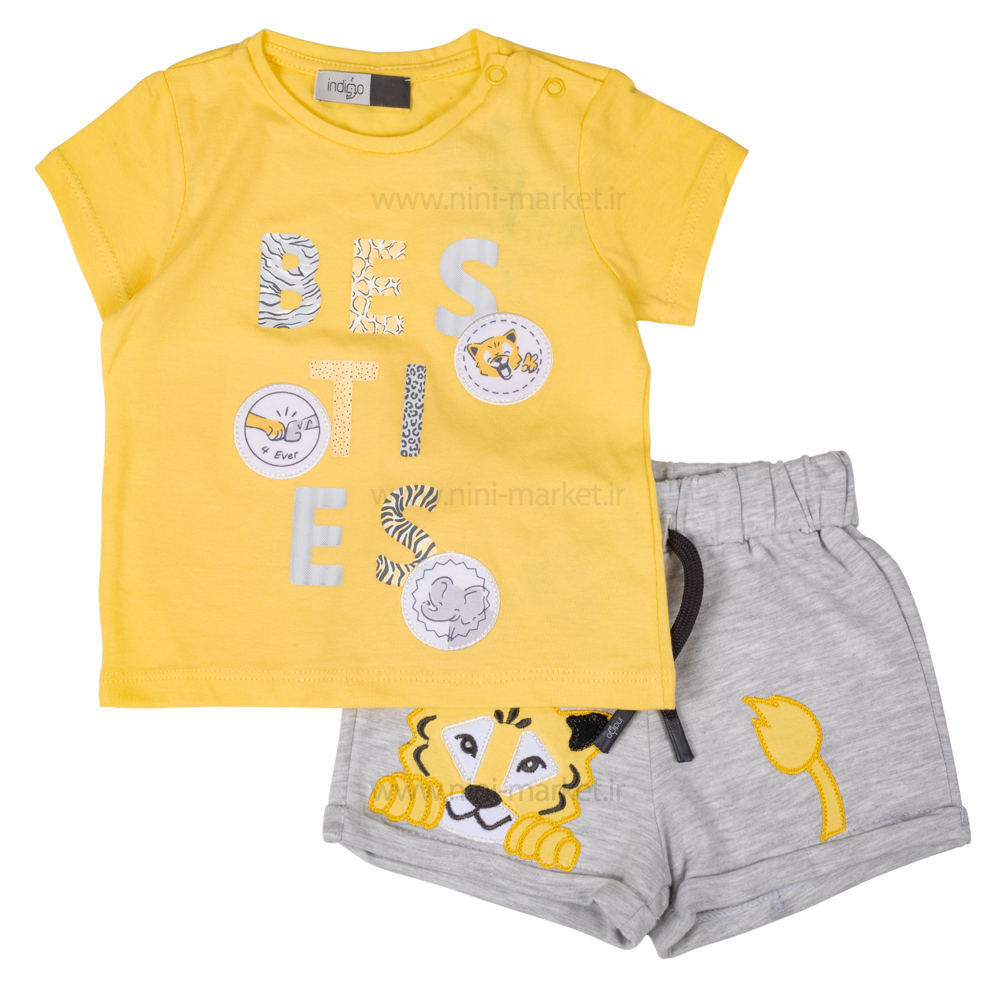 تیشرت شورت پسرانه طرح لاتین رنگ زرد ایندیگو Indigo