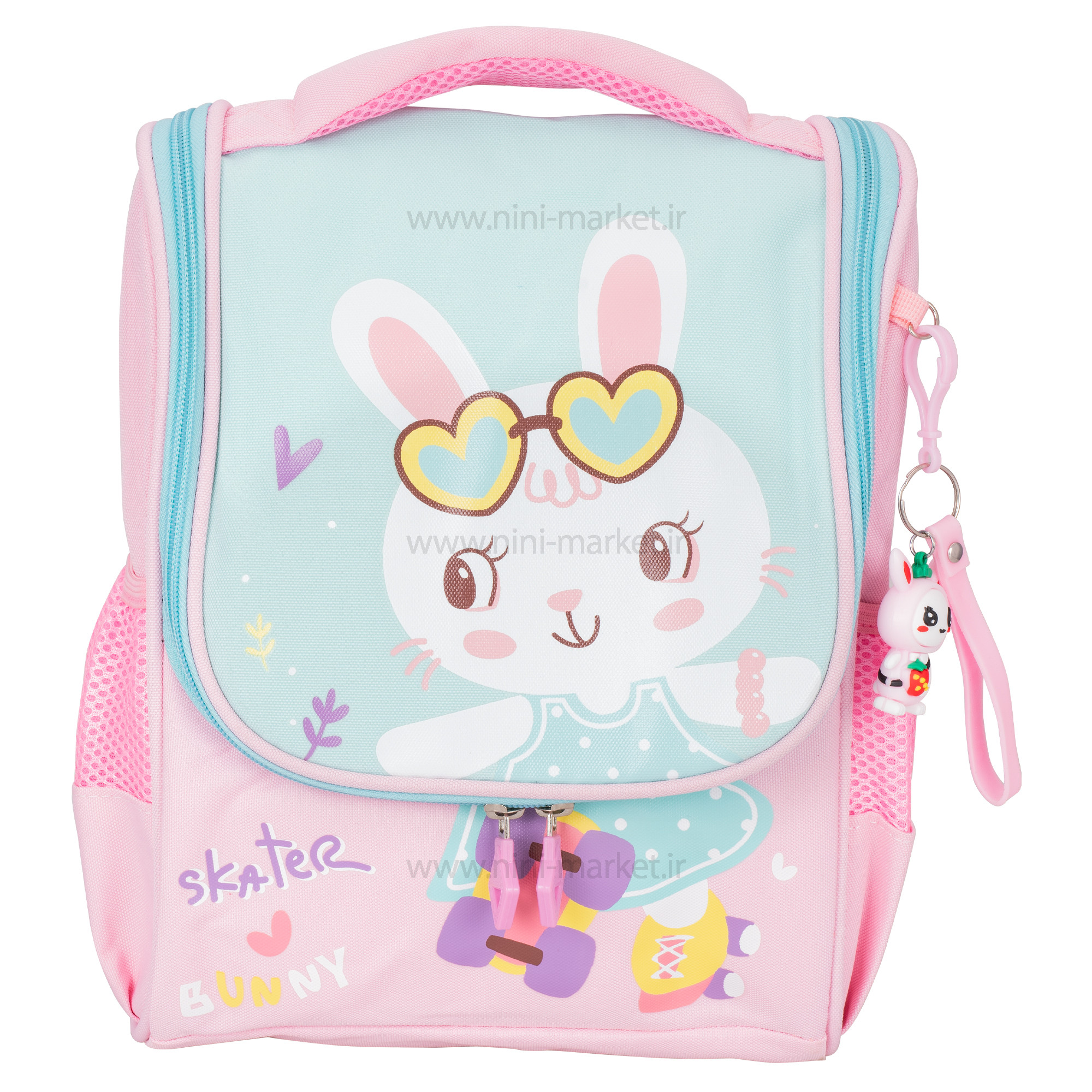کوله پشتی بچه گانه آویز دار طرح خرگوش برند خارجی یک کیف بسیار با کیفیت و زیبا است که مناسب رده سنی 6 سال به بالا است. از آنجا که کودکان در حال رشد هستند باید در انتخاب لوازم کودک دقت و تاکید بسیار داشت که استاندارد و متناسبات را نسبت با جثه کودک داشته باشد. علاوه بر انتخاب کیف یا کوله پشتی مناسب، کودک باید بیاموزد که چگونه آن را حمل کند. در صورتی که حمل کیف با یک دست یا یک طرف بدن، عادت شود، میتواند زوایای کمی از کج شدن ستون فقرات، افتادگی شانه و عوارضی از این قبیل را برای کودک به دنبال داشته باشد. کوله پشتی مناسب باید دو بند استاندارد باید داشته باشد و نحوه تنظیم آنها طوری باشد که در مهرههای ناحیه پشت قرار گیرد نه در قسمت پایین روی کمر قرار نگیرد. کوله پشتی بچه گانه آویز دار برند خارجی بسیار سبک و جادار است و از کیفیت بالایی برخوردار که بسیار نرم و با دوام است . دارای بند قابل تنظیم ارتفاع برروی بند دوشی برای محکم شدن و دارای قفل دکمه ای که دو بند را به هم وصل می کند برای قرارگیری بهتر بر روی دوش که یکی از مهم ترین ویژگی های آن این است که دارای استاندارد بالا که از آسیب دیدن به ستون فقرات جلوگیری می کند. این کیف بچگانه یک زیپ سرتاسر دارد که میتوان آن را باز کرد و به راحتی کتاب و وسایل بزرگ را در آن جا داد. دو جیب توری در کنار کیف دوخته شده است که لبه ای آن با کش کارشده که میتوان در آن بطری آب، فلاسک و لیوان شخصی کودک را در آن جای دارد. درب این کیف از بالای کیف توسط یک زیپ روان باز و بسته می شود که طرح خرگوش اسکیت سوار روی آن چاپ شده که زیبایی آن را چندیدن برابر کرده است. همچنین همراه این کیفی زیبا یک آویز فانتزی وجود دارد که میتوان آن را به صورت جداگانه به عنوان دسته کلید استفاده کرد. برای مشاهده دیگر مدل ها می توانید بر روی کلمه کوله پشتی کودک کلیک کنید.