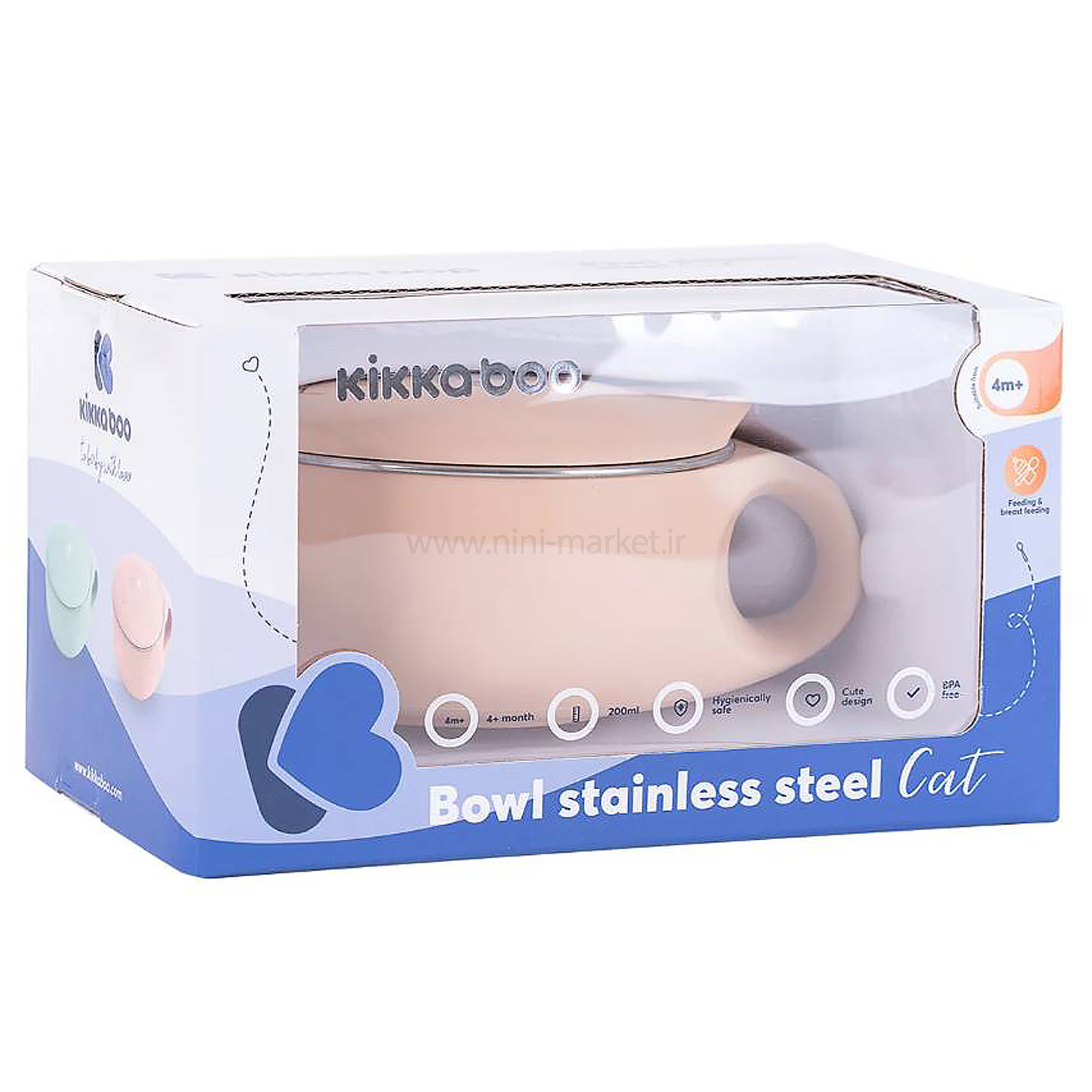 ظرف غذاي گرم نگهدارنده 200 ميل رنگ صورتی کیکابو  که از کیفیت بالایی برخوردار است. یک ظرف غذای مناسب برای نوزادان بالاتر از 4 ماه است. ظرف غذای کودک از جنس استیل ضد زنگ که برای رفع نیازهای والدین طراحی شده است. محافظت مضاعف که غذا را برای مدت طولانی تری گرم نگه می دارد. جنس داخل استیل ضد زنگ است.دو جداره است که به گرم نگه داشتن غذا کمک میکند. دارای یک دسته جهت نگه داری اسان طراحی شده است. یکی از زیبایی این ظرف غذا کیکابو آن است که از طراحی زیبایی به شکل گربه فانتزی می باشد که هر کودکی را به خود جذب میکند. این ظرف غذا فاقد هرگونه مواد مضر و حساسیت زا برای کودک می باشد.با توجه به دربی که دارد مناسب نگهداری غذا درون یخچال است. درب این ظرف غذا قفل ندارد و ضد چکه نیست. استفاده از این ظرف نگهدارنده کیکابو راحت است و با گذاشتن درب، غذای داخل ظرف از آلوده شدن در امان خواهد بود. این ظرف های غذا به راحتی در کیف جا می گیرند و سبک هستند و شست و شوی آن نیز راحت خواهد بود، ضمنا فاقد مواد مضر شیمیایی (BPA) می باشد.