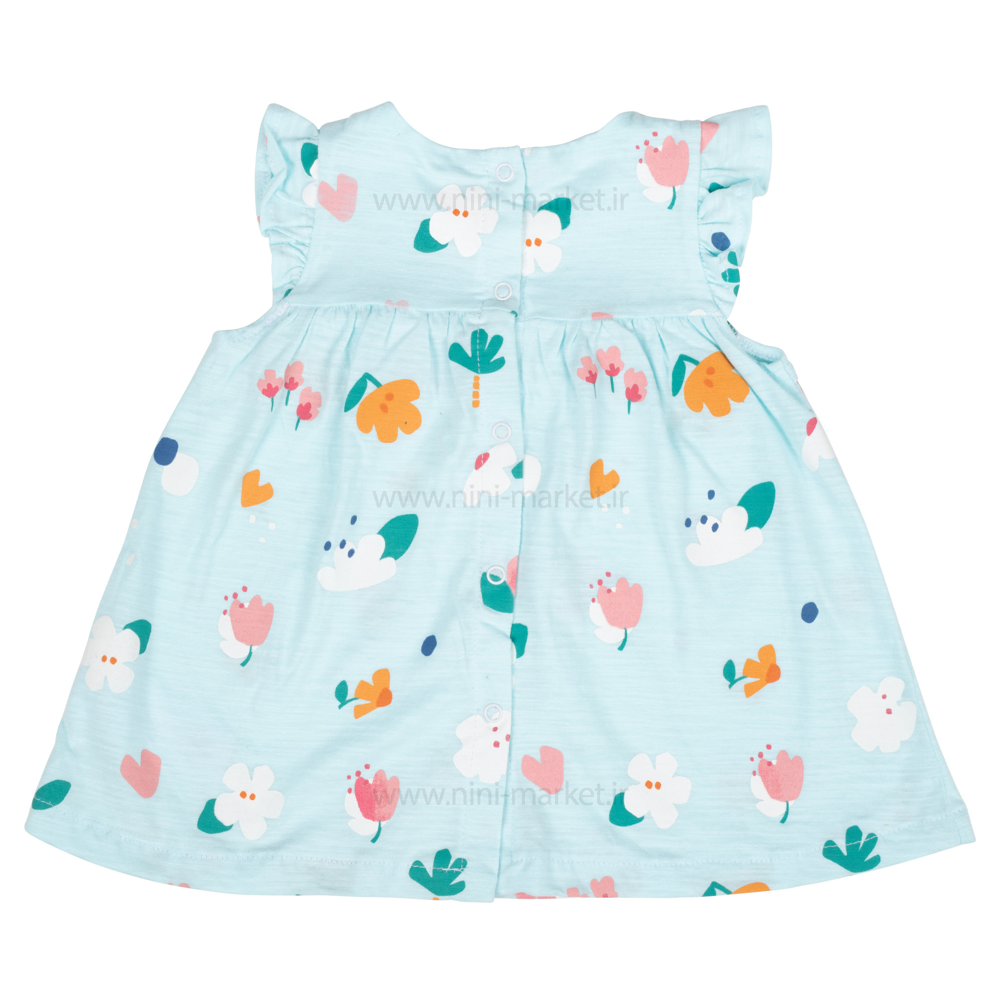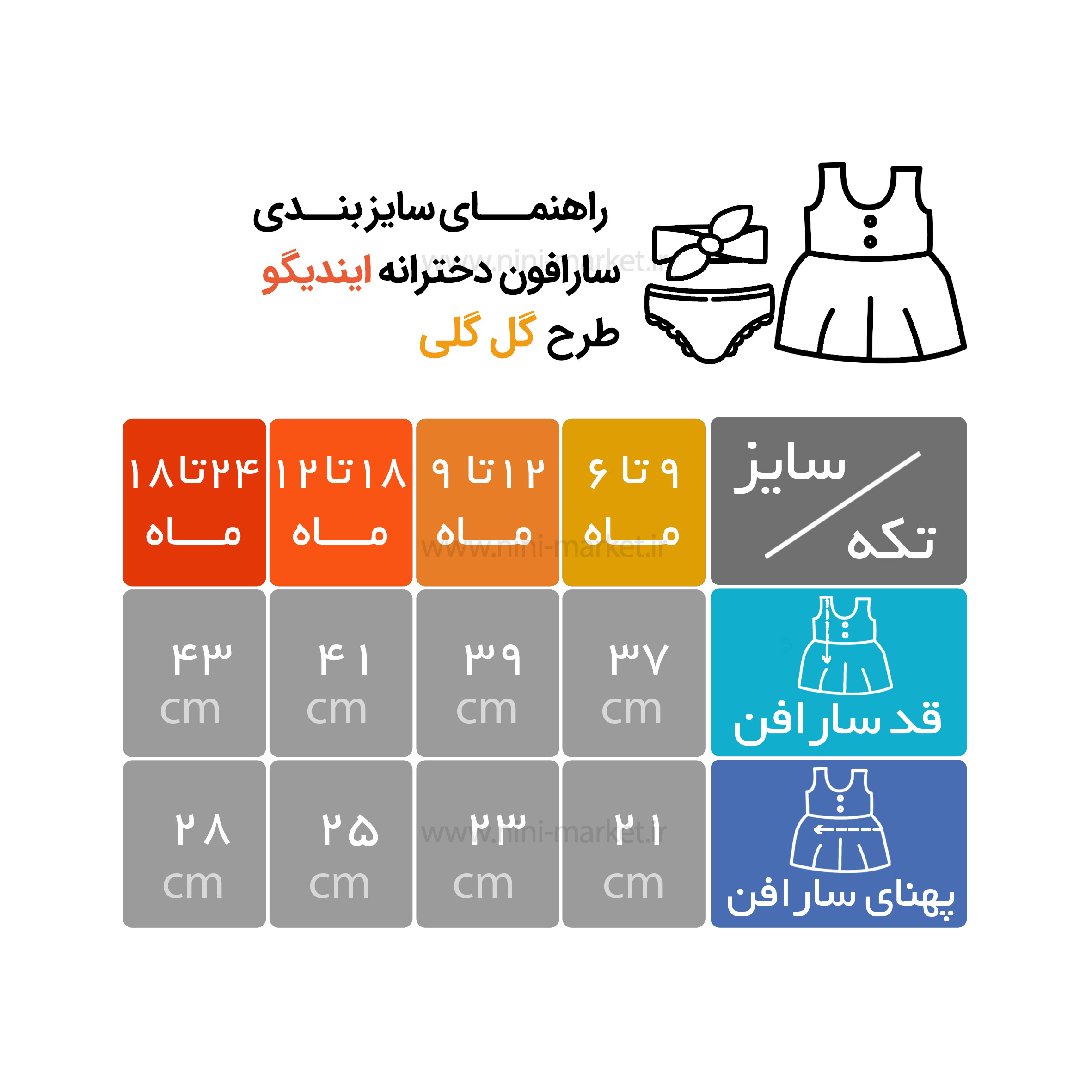 سارافون دخترانه طرح گل گلی رنگ آبی ایندیگو Indigo
