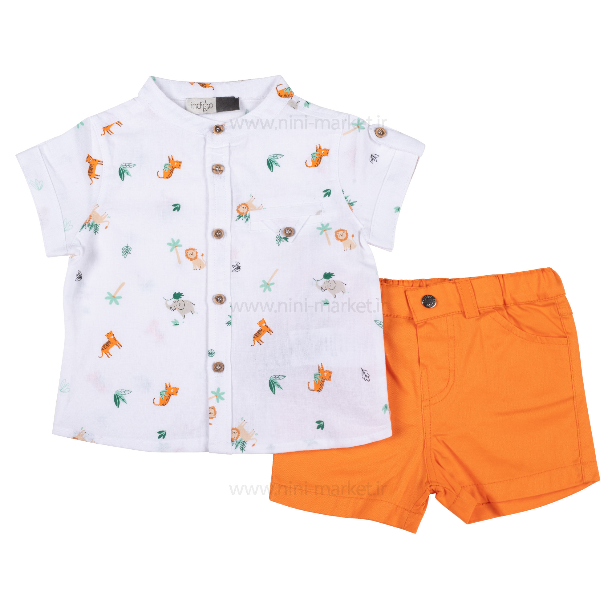 شومیز شورت پسرانه طرح حیوانات رنگ نارنجی ایندیگو Indigo