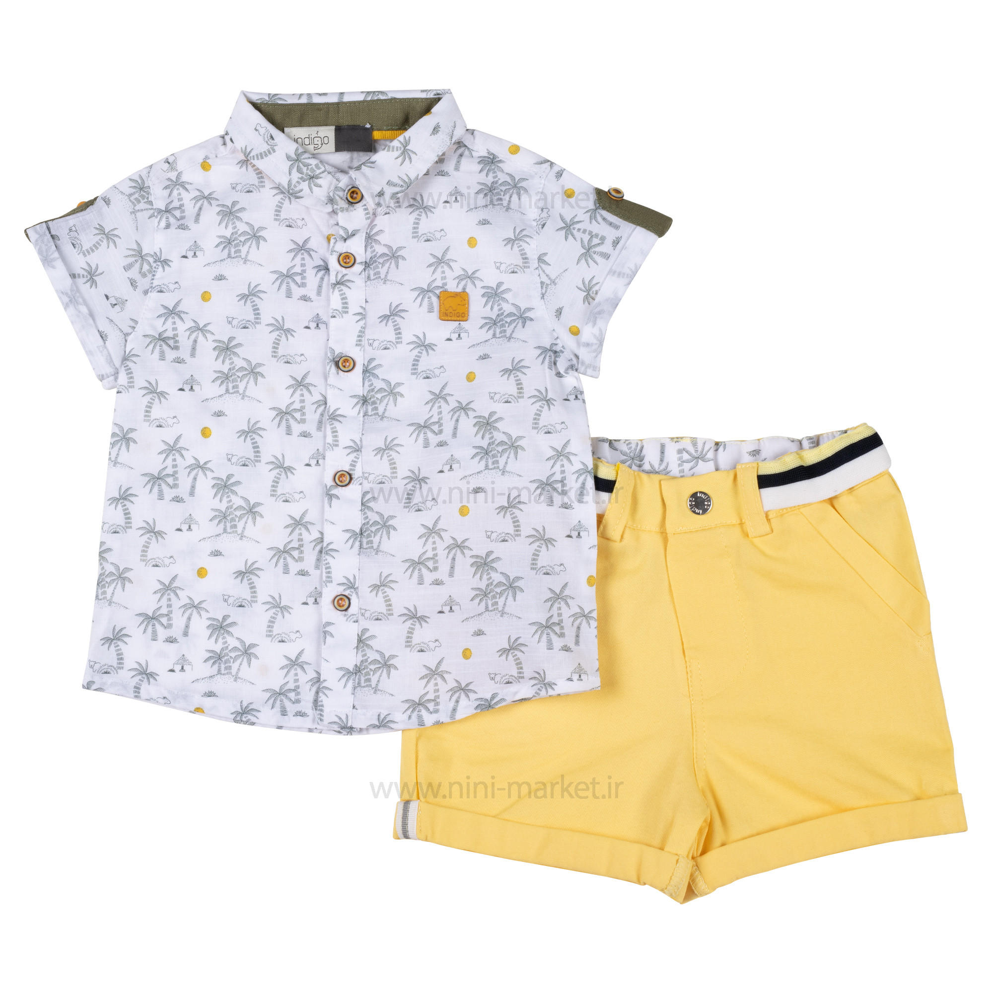 شومیز شورت پسرانه طرح درخت رنگ سبز زرد ایندیگو Indigo