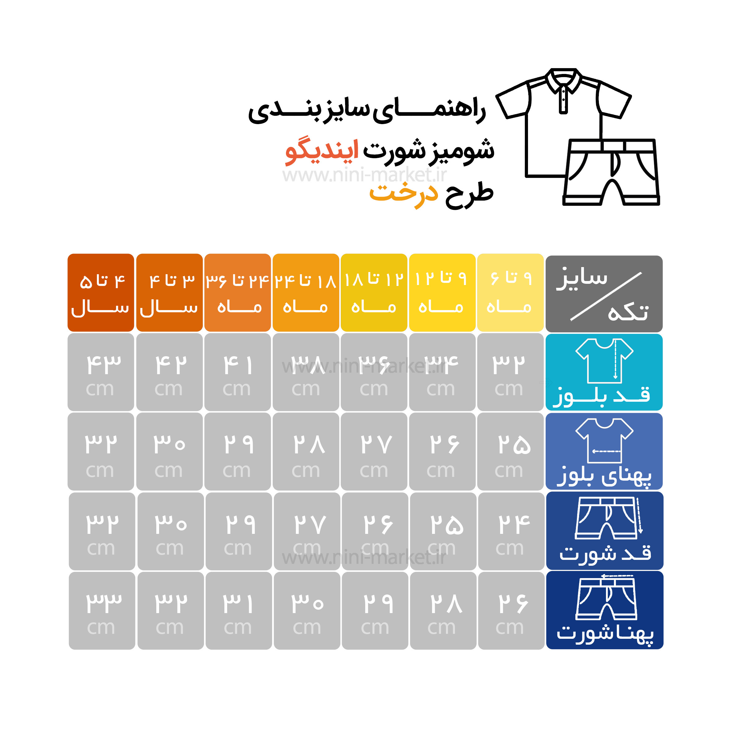 ویژگی شومیز شورت پسرانه طرح درخت رنگ نارنجی ایندیگو Indigo