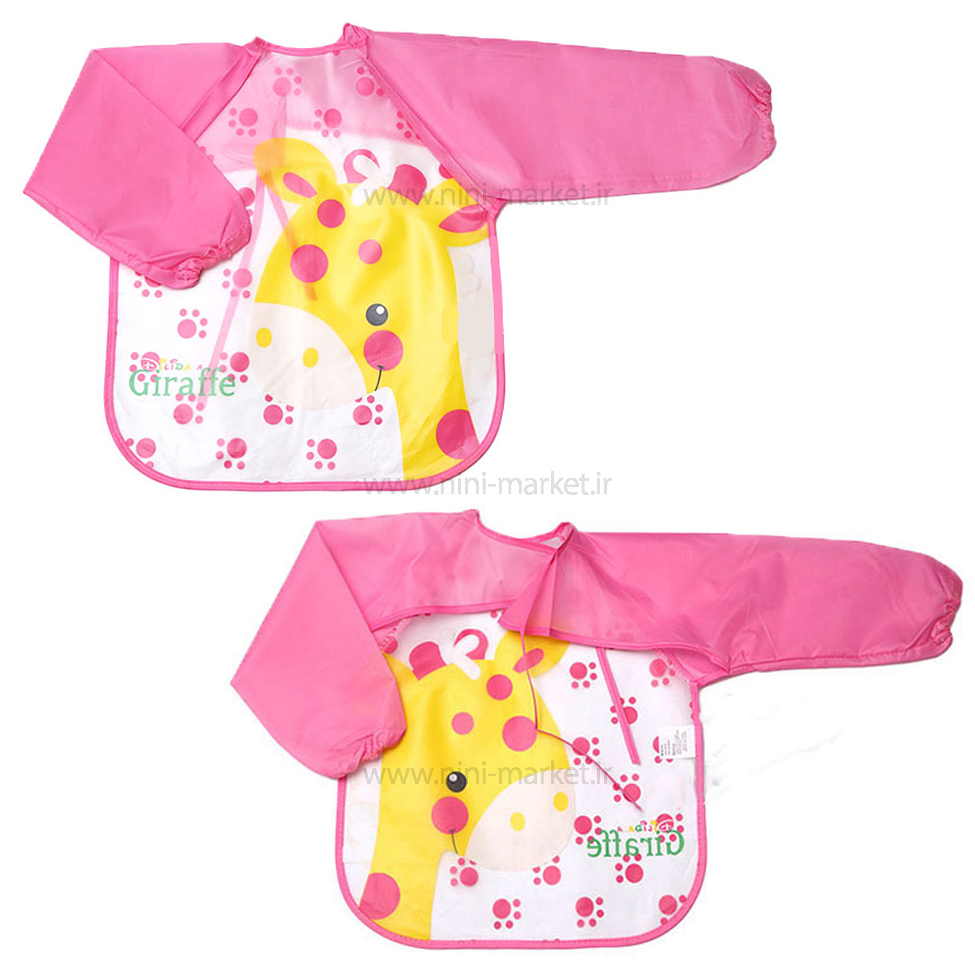 پیشبند غذاخوری آستین دار طرح زرافه رنگ صورتی برندخارجی