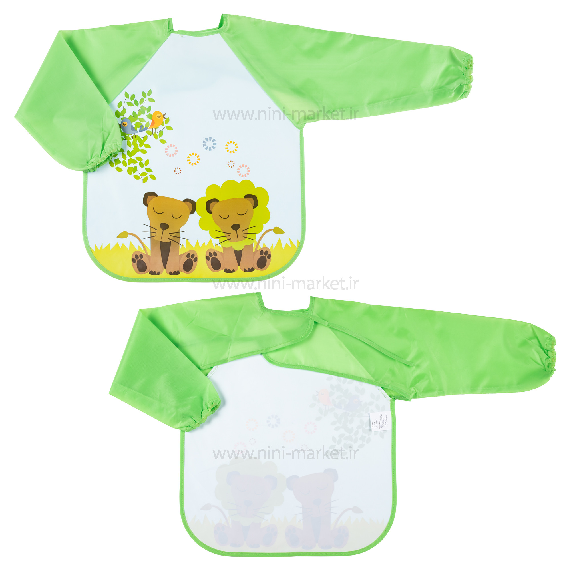 پیشبند غذاخوری آستین دار طرح شیر رنگ سبز برند خارجی