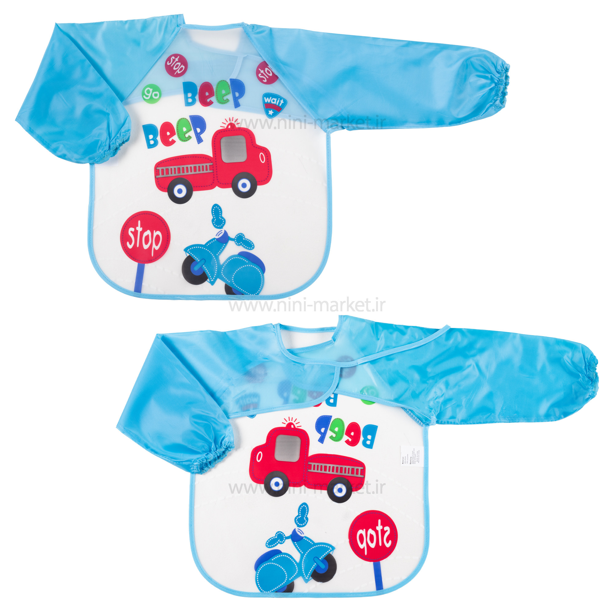 پیشبند غذاخوری آستین دار طرح ماشین رنگ آبی برند خارجی