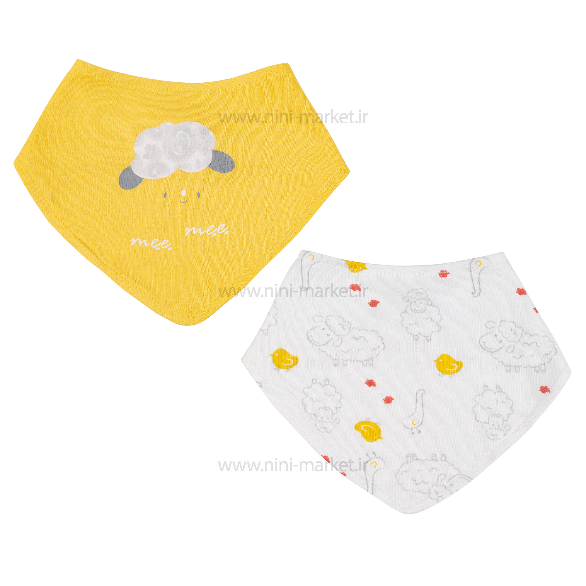 پيشبند سه گوش 2 عددی طرح گوسفند رنگ زرد بی ارگانیک Biorganic