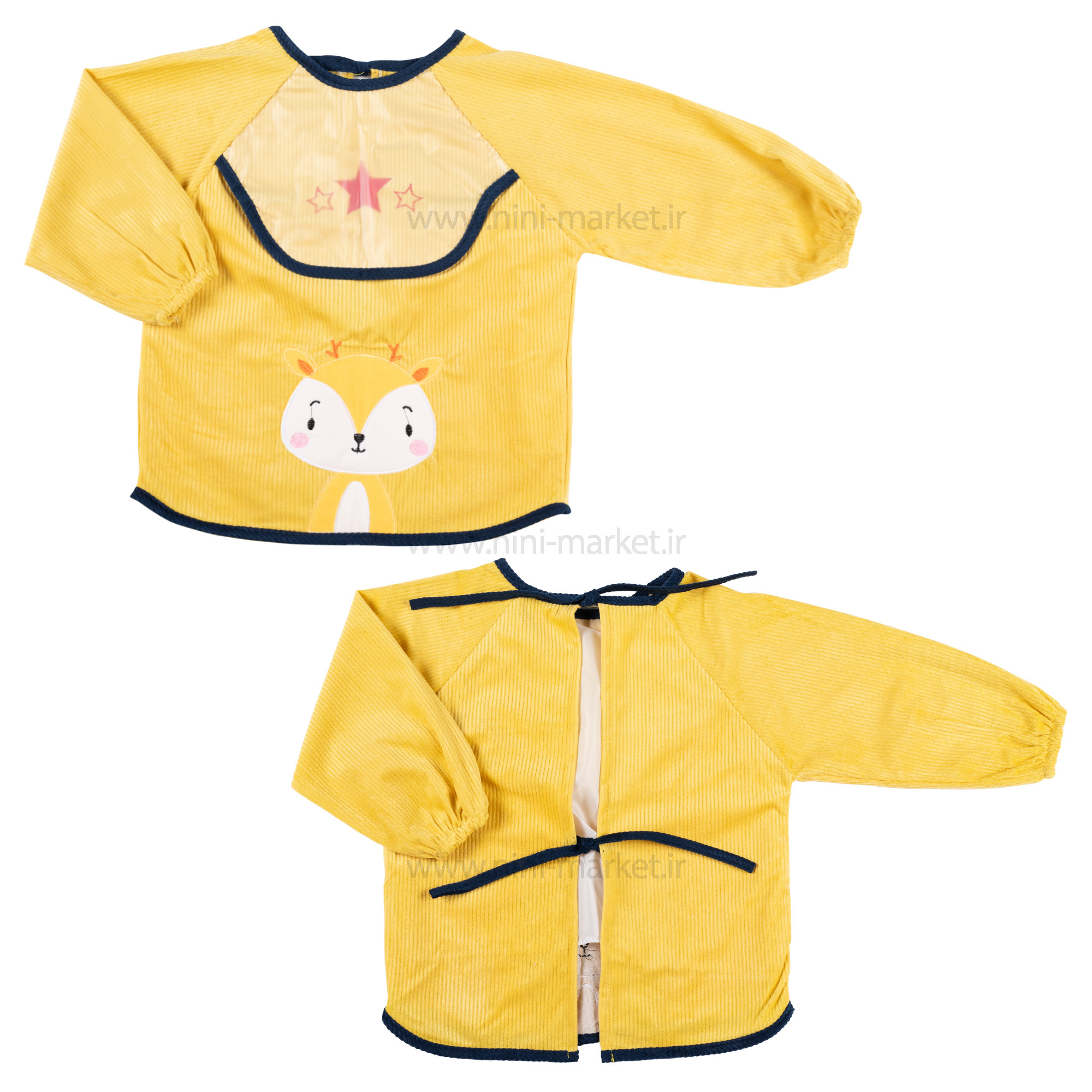 پيشبند آستین دار مخمل طرح گوزن رنگ زرد برند خارجی