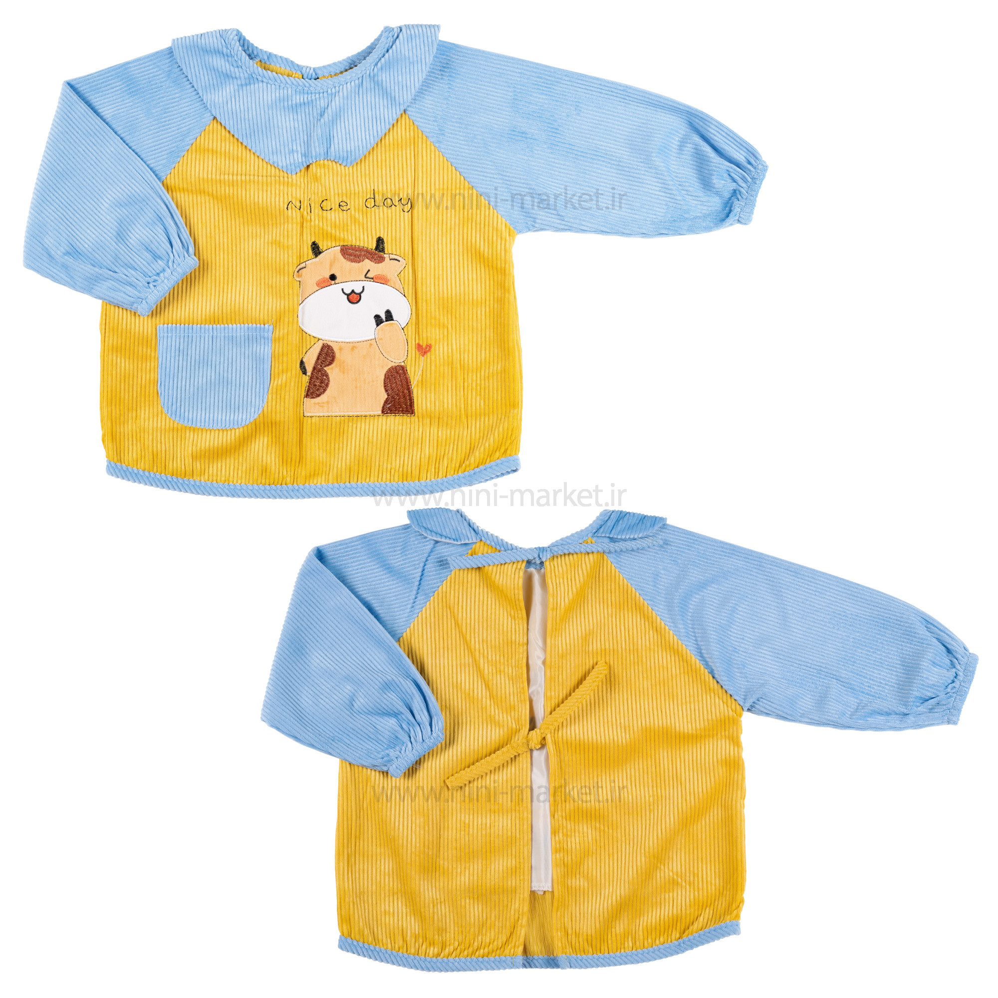پيشبند آستین دار مخمل طرح گاو رنگ زرد برند خارجی