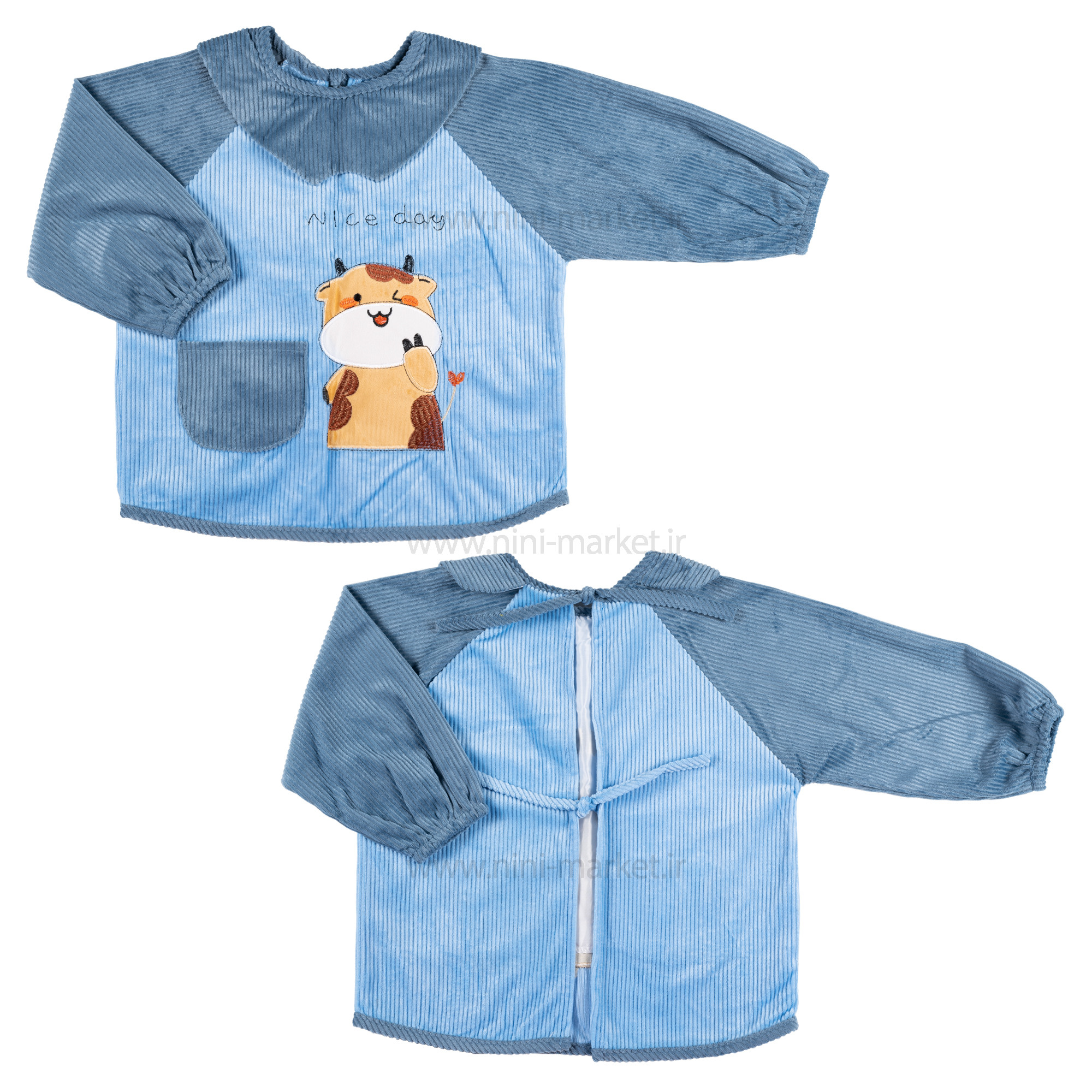 پيشبند آستین دار مخمل طرح گاو رنگ آبی برند خارجی