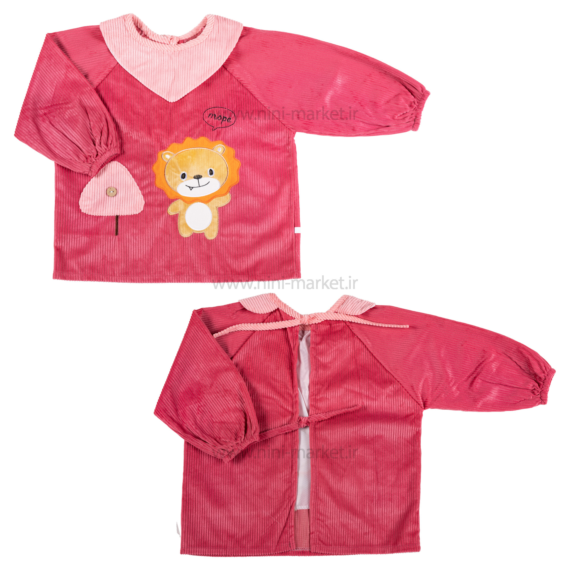 پيشبند آستین دار مخمل طرح شیر رنگ سرخابی برند خارجی
