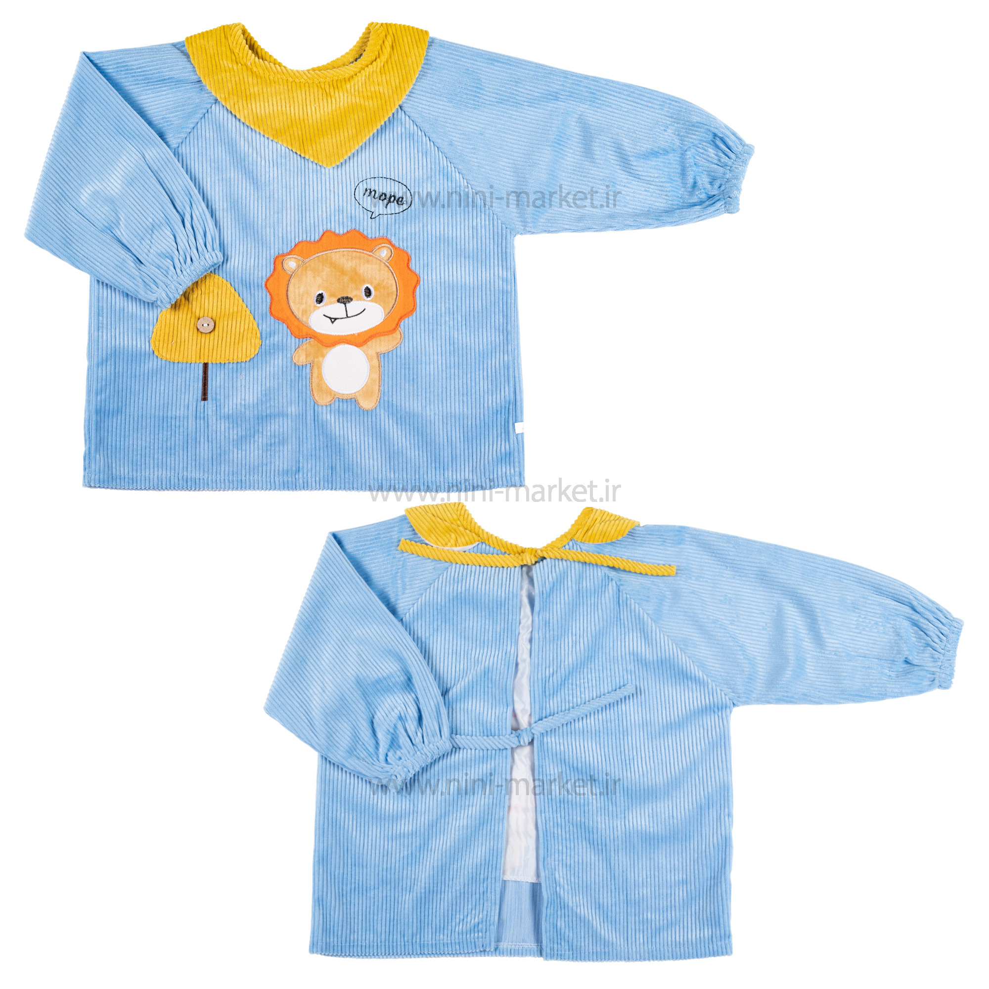 پيشبند آستین دار مخمل طرح شیر رنگ آبی برند خارجی