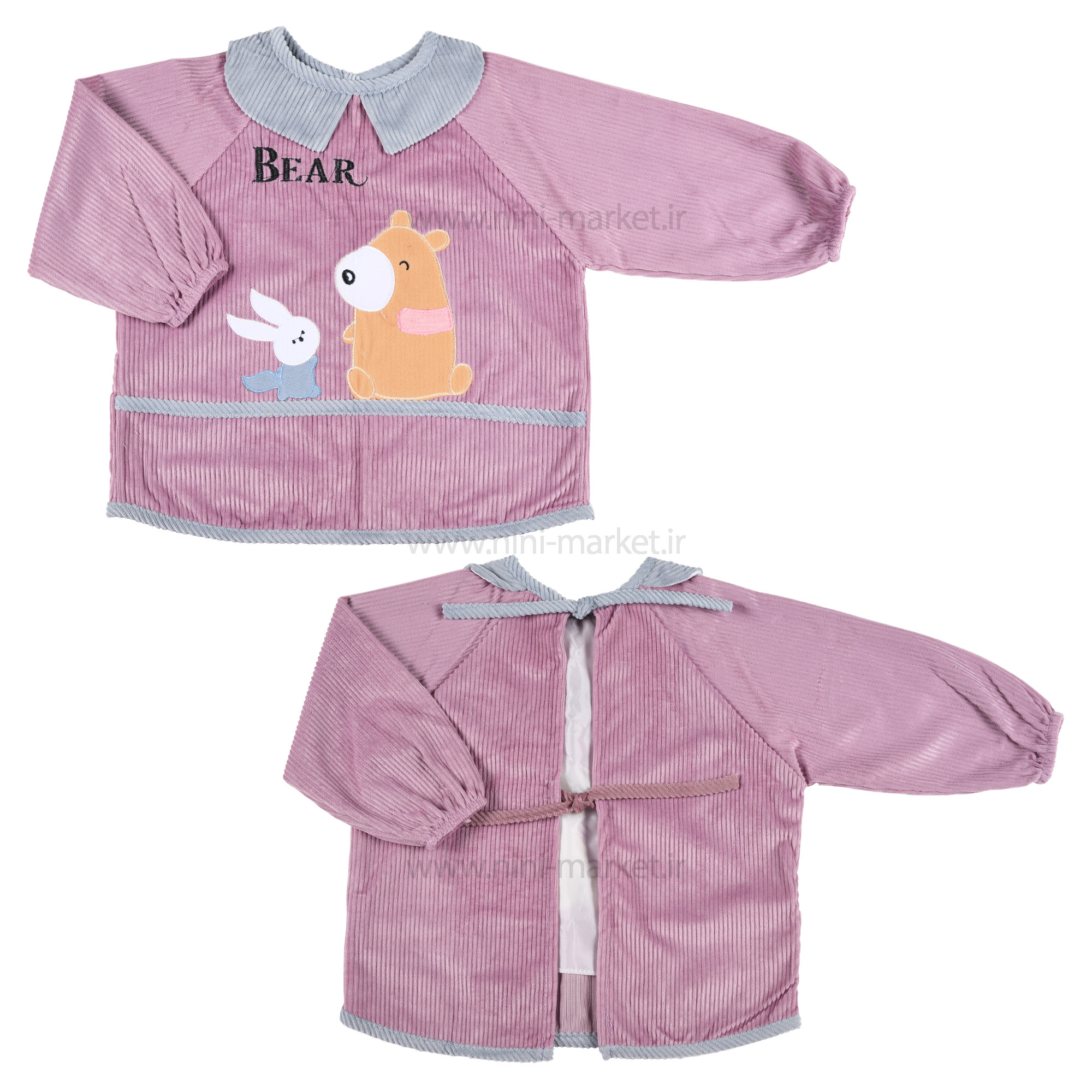 پيشبند آستین دار مخمل طرح خرس-خرگوش رنگ بنفش برند خارجی