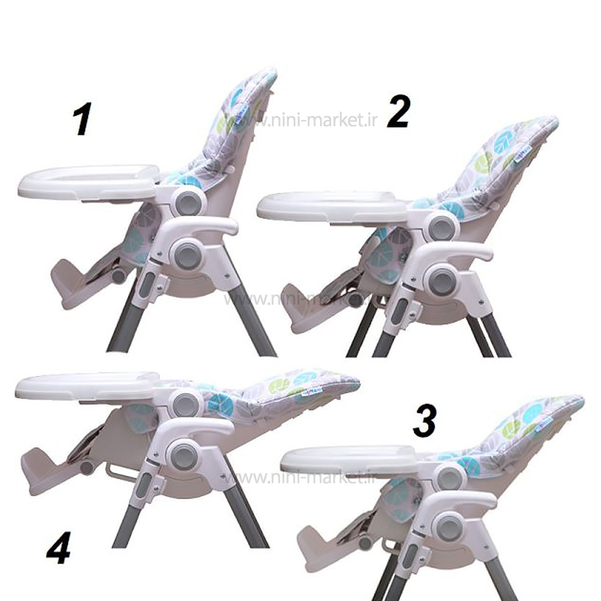 • مزیت : دارای پایه های بادوام و مقاوم - دارای قابلیت جمع شدن (تاشدن) - دارای قابلیت تنظیم پشتی صندلی در 4 حالت - صندلی غذا قابلیت تنظیم ارتفاع در 6 حالت - دارای کمربند ایمنی 5 نقطه ای - قابلیت جدا شدن سینی ها و شستشو - قابلیت تنظیم سینی ها نسبت به حجم کودک - دارای تشک یا قابلیت جدا کردن و شستشو - دارای طرح زیبا و شیک بر روی تشک - زیرپایی بزرگ و راحت با تنظیم در 3 حالت مختلف برای راحتی کودک - پایه های ضد لغزش و ثابت قابلیت جمع شدن سریع و آسان – قابلیت تنظیم سینی در 3 موقعیت