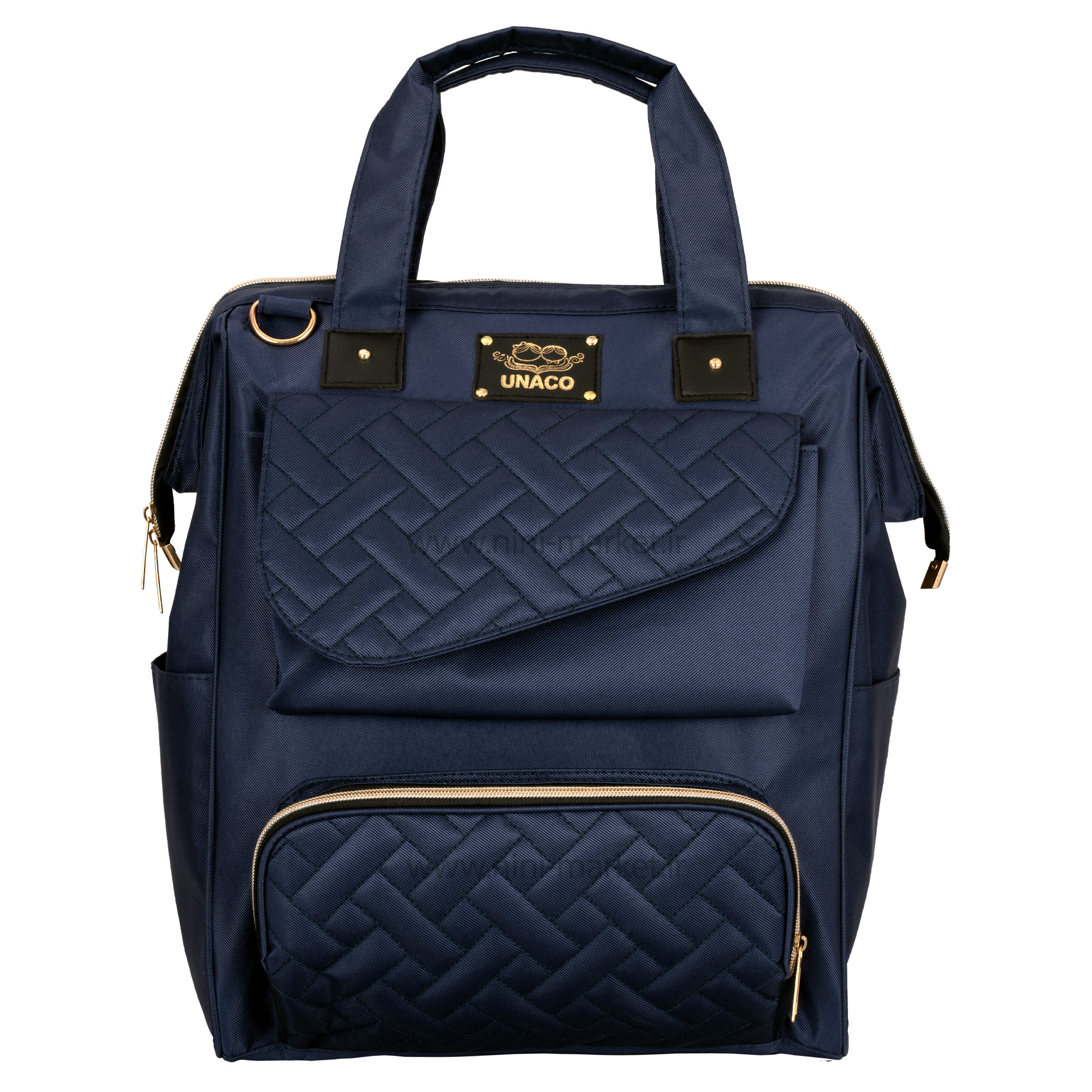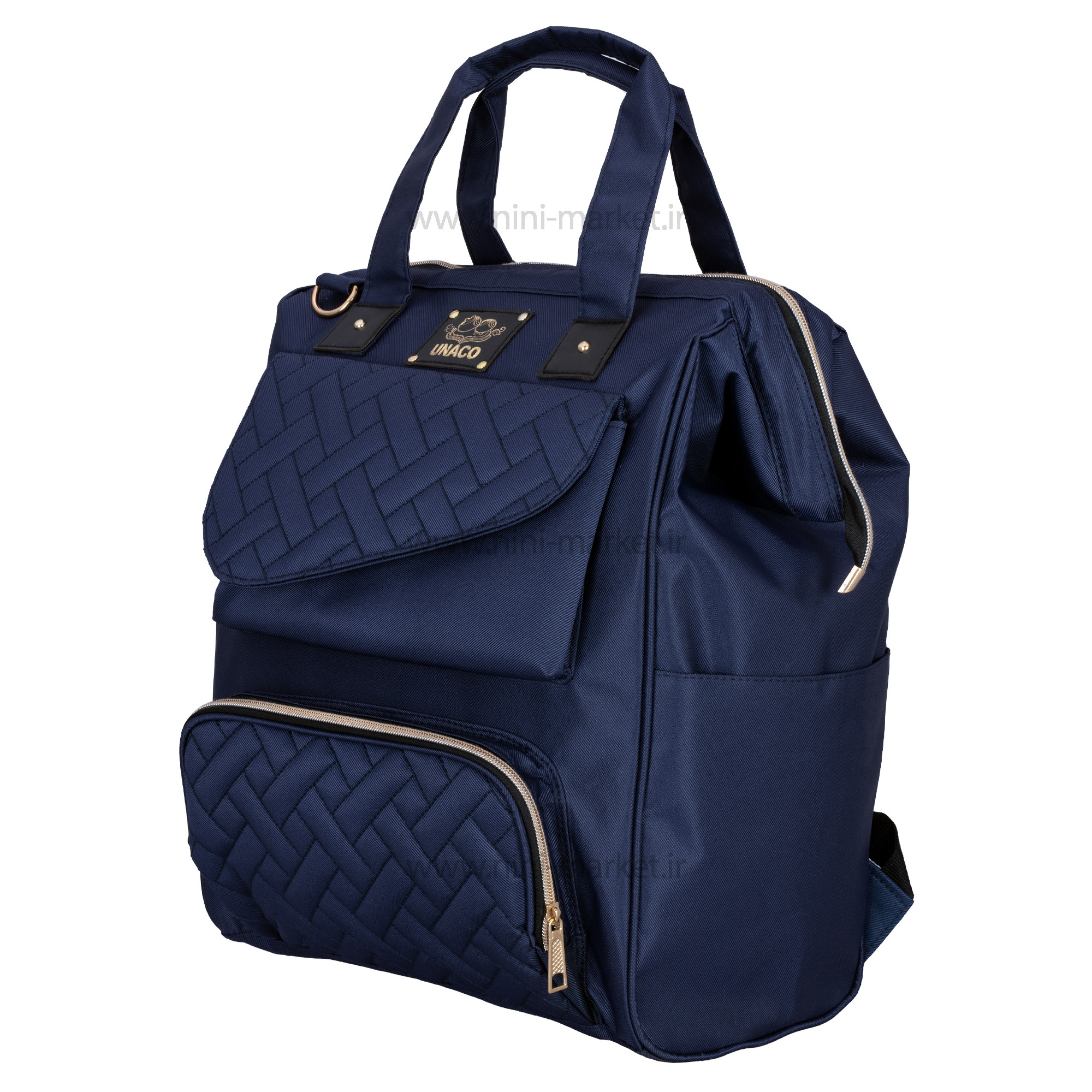 ساک لوازم کوله ای مدل دنیز رنگ سرمه ای یوناکو Unaco یک ساک لوازم نوزاد شیک و جادار است. طرح خاص و منحصر به فرد مدل دنیز برند یوناکو باعث شده است که کپی این مدل در برندهای مختلف با کیفیت بالا و قیمت مناسب تولید شود. اکثر بانوان عادت دارند از کیف های مختلف برای جابجایی و حمل وسایل مورد نیاز خود استفاده کنند .یکی از ضروری ترین نیازهای مادر نوزاد دار یک ساک لوازم نوزاد است . ممکن است کیف هایی که قبلا از آن ها استفاده می کردیم به علت کم جا بودن دیگر به کارمان نیاید .مرغوب ترین کیف های لوازم آنهایی هستند که اکسسوارهای مفیدی درونشان دارند که زندگی را برایتان راحت تر می کنند . ساک لوازم نوزاد یوناکو دارای بند های قابل تنظیم می باشد که میتوان آن ها را به سایز دلخواه تنظیم نمود .کیفیت و جنس کوله پشتی یوناکو بسیار عالی می باشد و خیال ما را از نظر استحکام راحت می نماید .یکی از ویژگی های چشمگیر کوله پشتی و ساک لوازم نوزاد یوناکو خاصیت ضد آب بودن این کیف می باشد .فضای داخل کیف بسیار بزرگ و جا دار است که ما می توانیم وسایل مورد نیاز خود را بدون نگرانی از کمبود فضا , با خود جابجا کنیم . ظاهر زیبای این کیف یکی از ویژگی های منحصر به فرد آن می باشد .قسمت جلوی این کیف زیپ دار است و همچنین دارای 4 جیب بیرونی می باشد .عمق زیاد کوله پشتی نوزاد، امکان حمل وسایل زیاد و سنگین را فراهم میکند. کوله پشتی از لحاظ سلامت اسکلتی-عضلانی والدین، نسبت به سایر کیفهای نوزاد انتخاب بهتری است زیرا وزن را به طور مساوی در دو طرف بدن تقسیم میکنند. بنابراین از آنها میتوان برای ساعتهای طولانیتری استفاده کرد. کوله پشتی، دستها را نیز آزاد گذاشته و رسیدگی به نوزاد را آسانتر میکند.