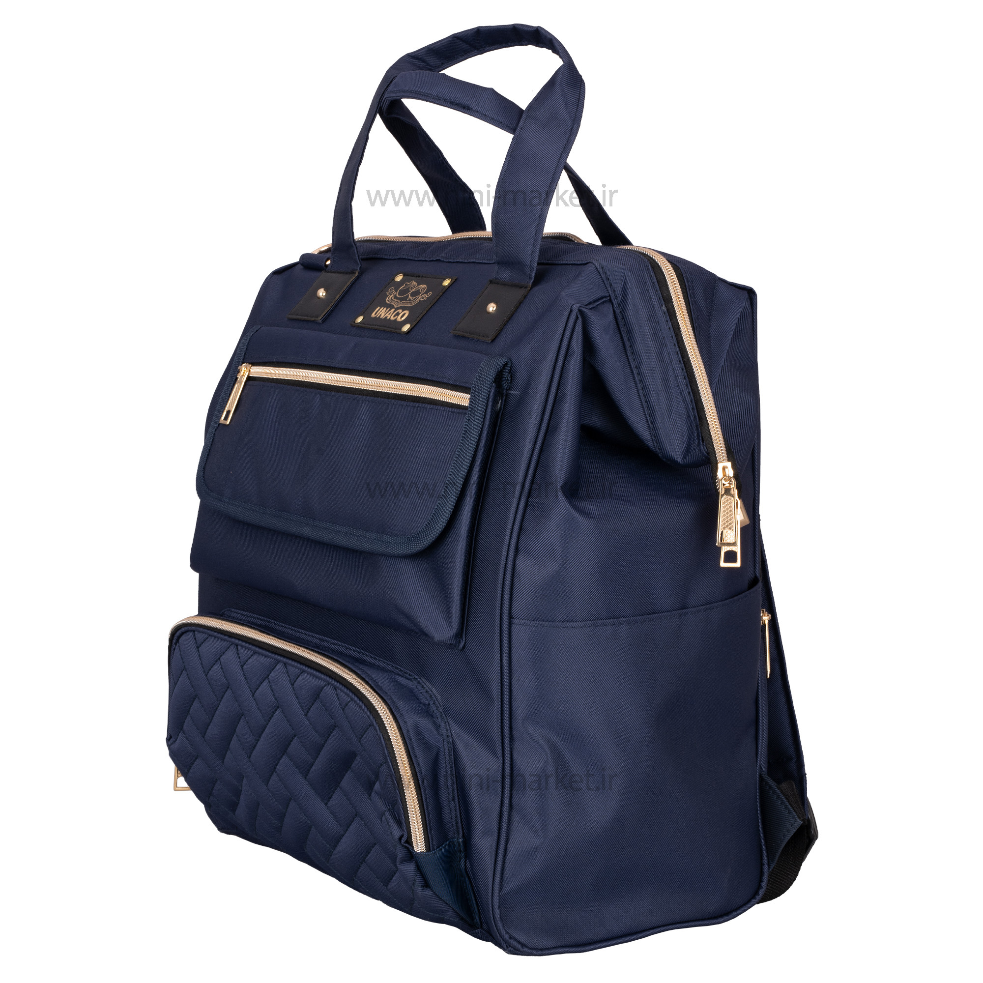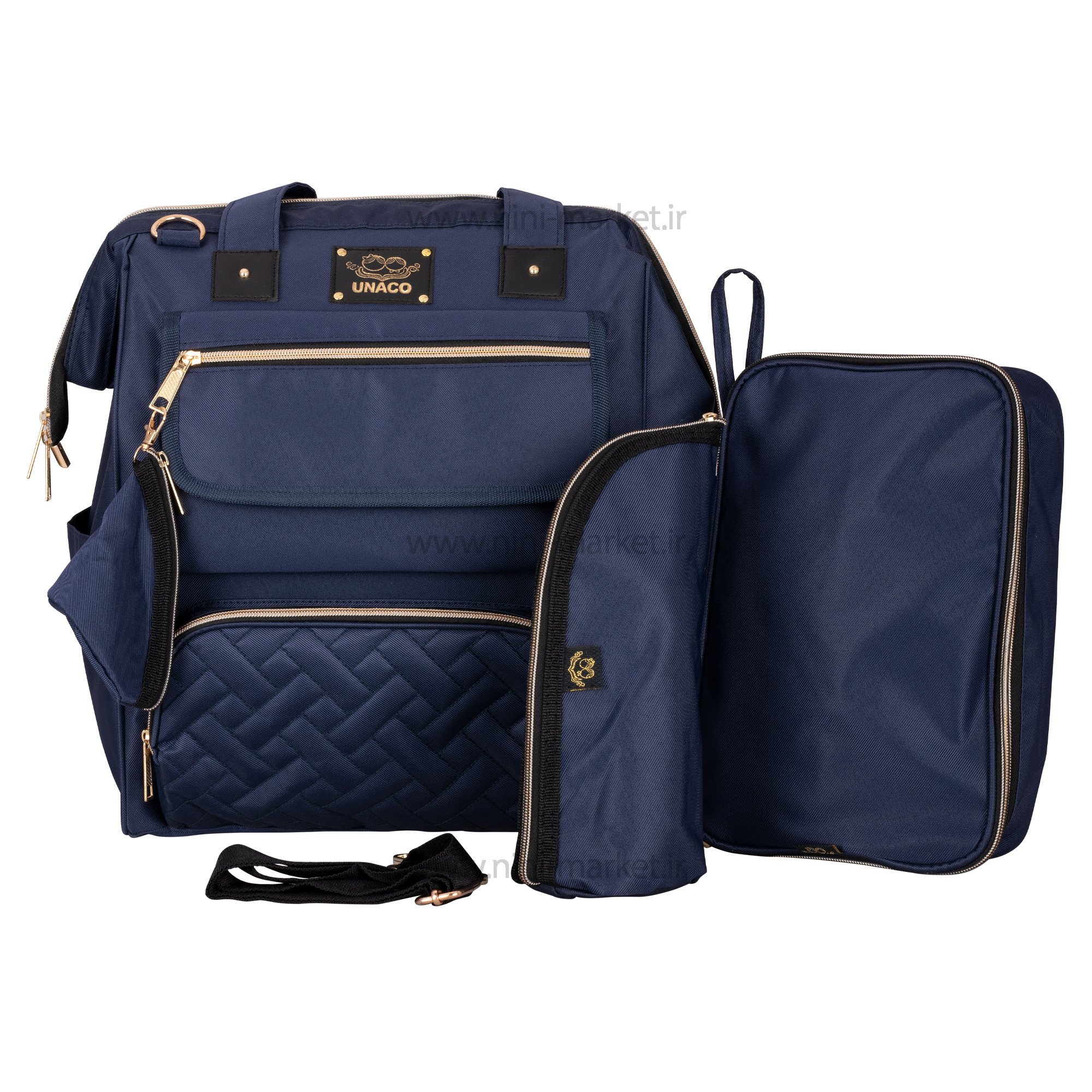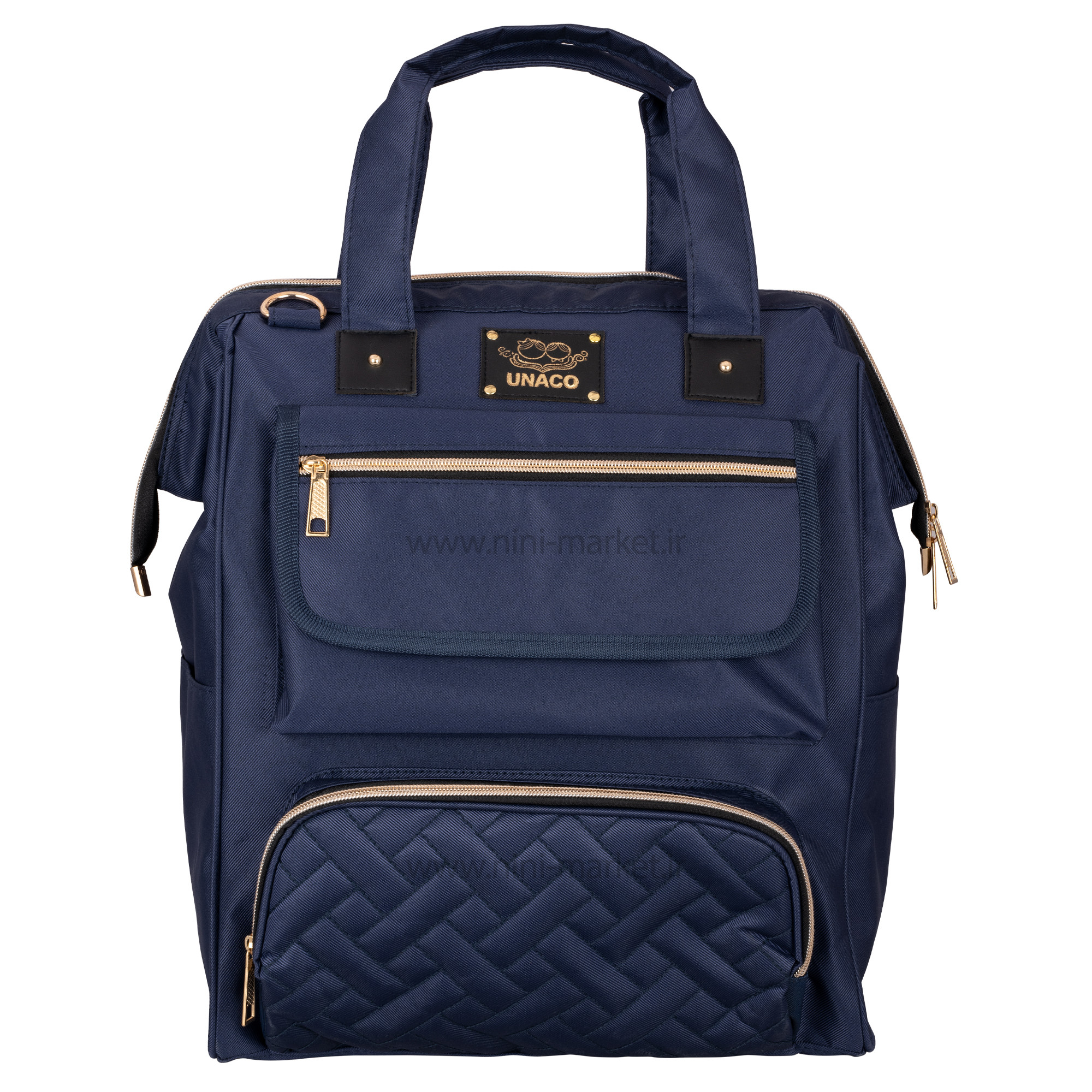 ساک لوازم کوله ای مدل مرسدس رنگ سرمه ای یوناکو Unaco یک ساک لوازم نوزاد شیک و جادار است. طرح خاص و منحصر به فرد مدل مرسدس برند یوناکو باعث شده است که کپی این مدل در برندهای مختلف با کیفیت بالا و قیمت مناسب تولید شود. اکثر بانوان عادت دارند از کیف های مختلف برای جابجایی و حمل وسایل مورد نیاز خود استفاده کنند .یکی از ضروری ترین نیازهای مادر نوزاد دار یک ساک لوازم نوزاد است . ممکن است کیف هایی که قبلا از آن ها استفاده می کردیم به علت کم جا بودن دیگر به کارمان نیاید .مرغوب ترین کیف های لوازم آنهایی هستند که اکسسوارهای مفیدی درونشان دارند که زندگی را برایتان راحت تر می کنند . ساک لوازم نوزاد یوناکو دارای بند های قابل تنظیم می باشد که میتوان آن ها را به سایز دلخواه تنظیم نمود .کیفیت و جنس کوله پشتی یوناکو بسیار عالی می باشد و خیال ما را از نظر استحکام راحت می نماید .یکی از ویژگی های چشمگیر کوله پشتی و ساک لوازم نوزاد یوناکو خاصیت ضد آب بودن این کیف می باشد .فضای داخل کیف بسیار بزرگ و جا دار است که ما می توانیم وسایل مورد نیاز خود را بدون نگرانی از کمبود فضا , با خود جابجا کنیم . ظاهر زیبای این کیف یکی از ویژگی های منحصر به فرد آن می باشد .قسمت جلوی این کیف زیپ دار است و همچنین دارای 4 جیب بیرونی می باشد .عمق زیاد ساک لوازم کوله ای نوزاد امکان حمل وسایل زیاد و سنگین را فراهم میکند. کوله پشتی از لحاظ سلامت اسکلتی-عضلانی والدین، نسبت به سایر کیفهای نوزاد انتخاب بهتری است زیرا وزن را به طور مساوی در دو طرف بدن تقسیم میکنند. همچنین همراه با این ساک لوازم یوناکو دو عدد کیف وجود دارد که داخل یکی از آن میتوان فلاسک و در دیگری میتوان لوازم بهداشتی اعم از پوشک ، پودر بچه ، دستمال مرطوب و ... قرار داد که بسیار برای کودک ضروریست. بنابراین از آنها میتوان برای ساعتهای طولانیتری استفاده کرد. کوله پشتی، دستها را نیز آزاد گذاشته و رسیدگی به نوزاد را آسانتر میکند.