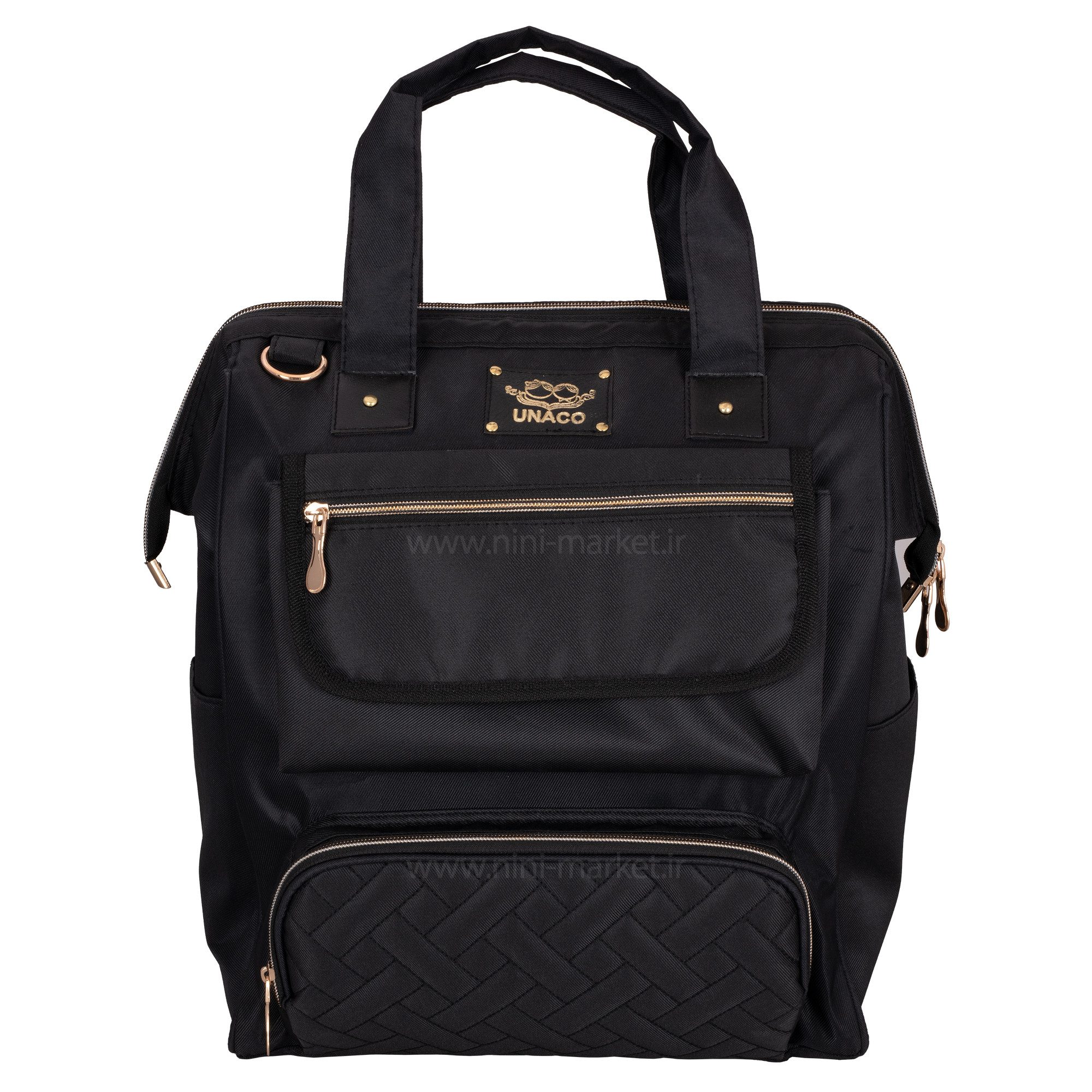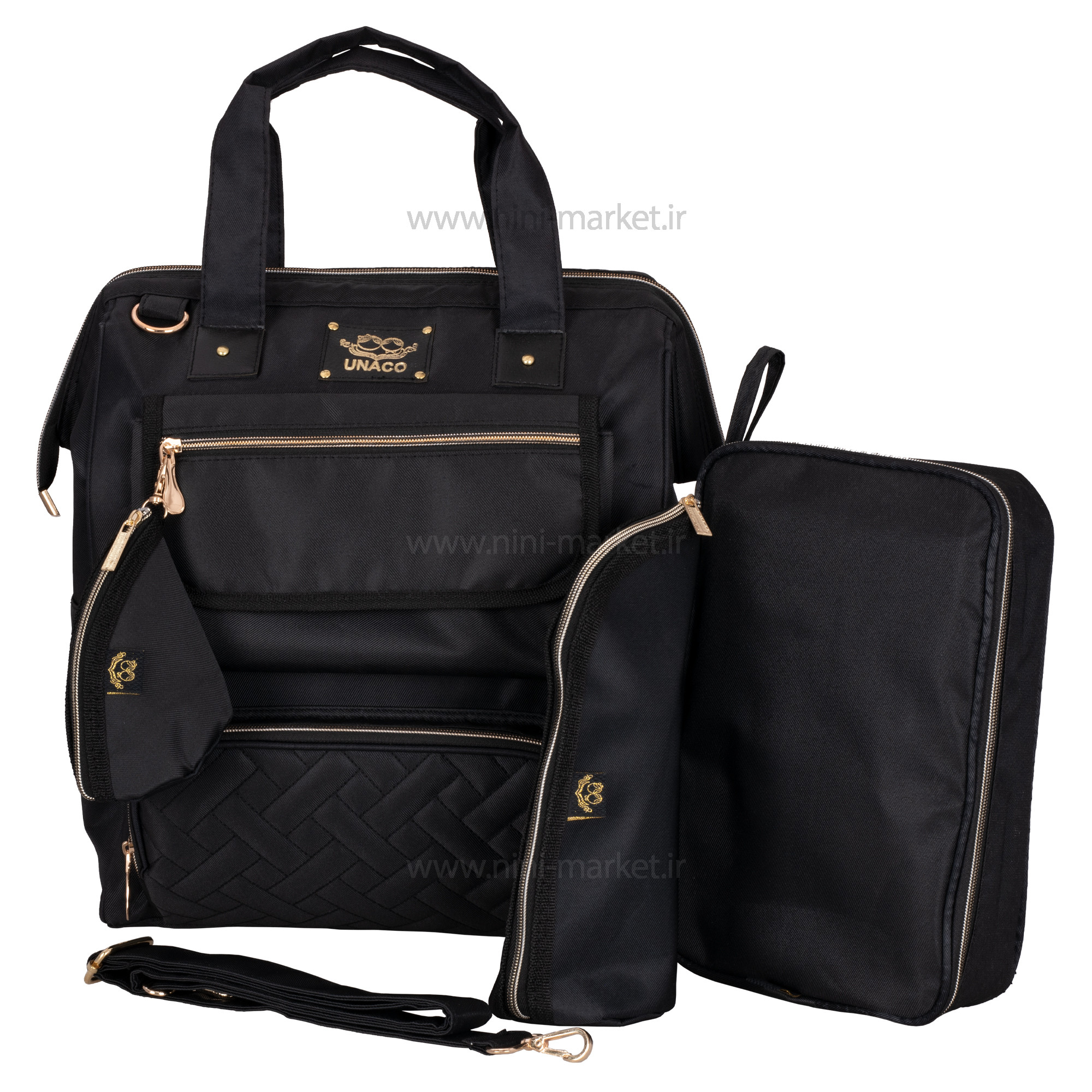 ساک لوازم کوله ای مدل مرسدس رنگ مشکی یوناکو Unaco یک ساک لوازم نوزاد شیک و جادار است. طرح خاص و منحصر به فرد مدل دنیز برند یوناکو باعث شده است که کپی این مدل در برندهای مختلف با کیفیت بالا و قیمت مناسب تولید شود. اکثر بانوان عادت دارند از کیف های مختلف برای جابجایی و حمل وسایل مورد نیاز خود استفاده کنند .یکی از ضروری ترین نیازهای مادر نوزاد دار یک ساک لوازم نوزاد است . ممکن است کیف هایی که قبلا از آن ها استفاده می کردیم به علت کم جا بودن دیگر به کارمان نیاید .مرغوب ترین کیف های لوازم آنهایی هستند که اکسسوارهای مفیدی درونشان دارند که زندگی را برایتان راحت تر می کنند . ساک لوازم نوزاد یوناکو دارای بند های قابل تنظیم می باشد که میتوان آن ها را به سایز دلخواه تنظیم نمود .کیفیت و جنس ساک لوازم کوله ای یوناکو بسیار عالی می باشد و خیال ما را از نظر استحکام راحت می نماید .یکی از ویژگی های چشمگیر کوله پشتی و ساک لوازم نوزاد یوناکو خاصیت ضد آب بودن این کیف می باشد .فضای داخل کیف بسیار بزرگ و جا دار است که ما می توانیم وسایل مورد نیاز خود را بدون نگرانی از کمبود فضا , با خود جابجا کنیم . ظاهر زیبای این کیف یکی از ویژگی های منحصر به فرد آن می باشد .قسمت جلوی این کیف زیپ دار است و همچنین دارای 4 جیب بیرونی می باشد .عمق زیاد کوله پشتی نوزاد، امکان حمل وسایل زیاد و سنگین را فراهم میکند. کوله پشتی از لحاظ سلامت اسکلتی-عضلانی والدین، نسبت به سایر کیفهای نوزاد انتخاب بهتری است زیرا وزن را به طور مساوی در دو طرف بدن تقسیم میکنند. همچنین همراه با این ساک لوازم یوناکو دو عدد کیف وجود دارد که داخل یکی از آن میتوان فلاسک و در دیگری میتوان لوازم بهداشتی اعم از پوشک ، پودر بچه ، دستمال مرطوب و ... قرار داد که بسیار برای کودک ضروریست. بنابراین از آنها میتوان برای ساعتهای طولانیتری استفاده کرد. کوله پشتی، دستها را نیز آزاد گذاشته و رسیدگی به نوزاد را آسانتر میکند.