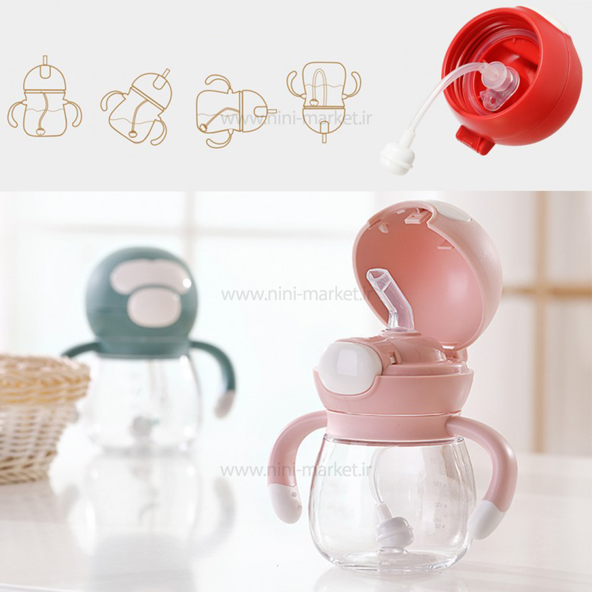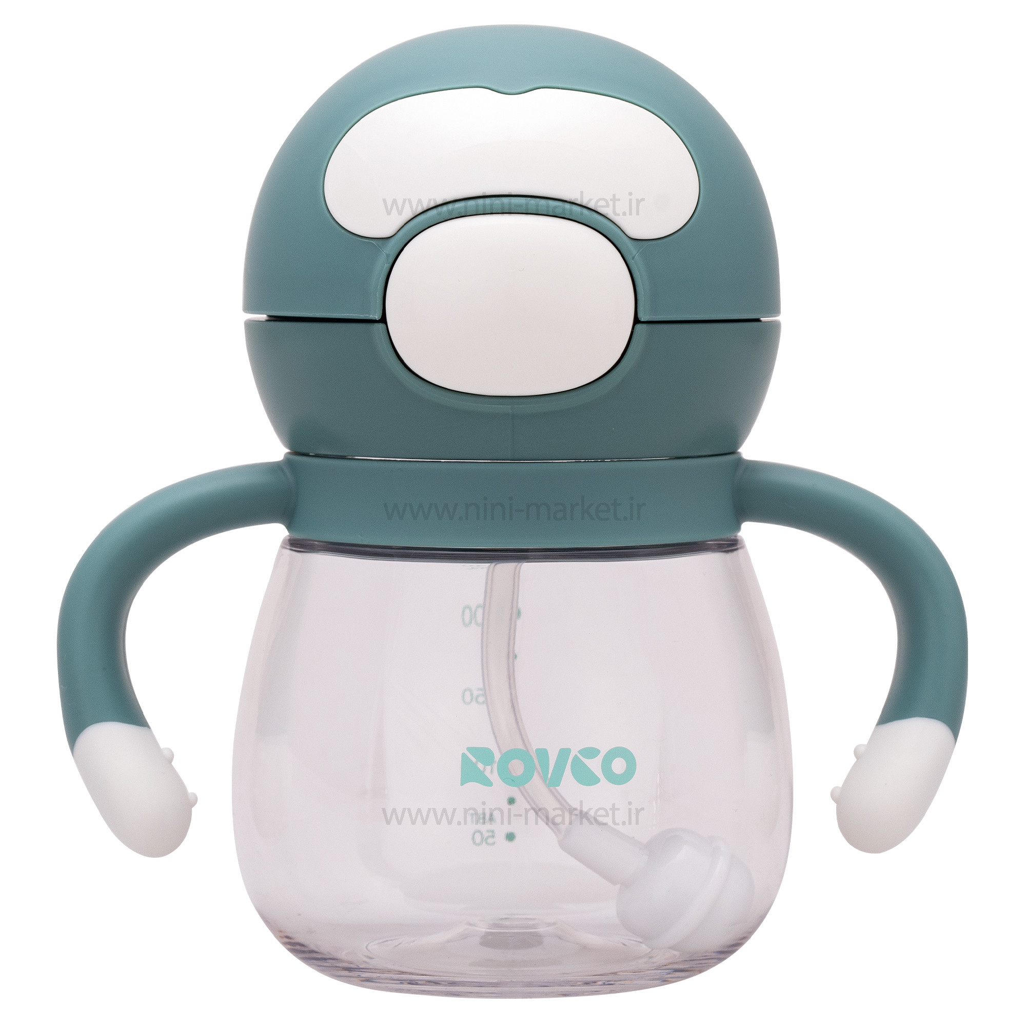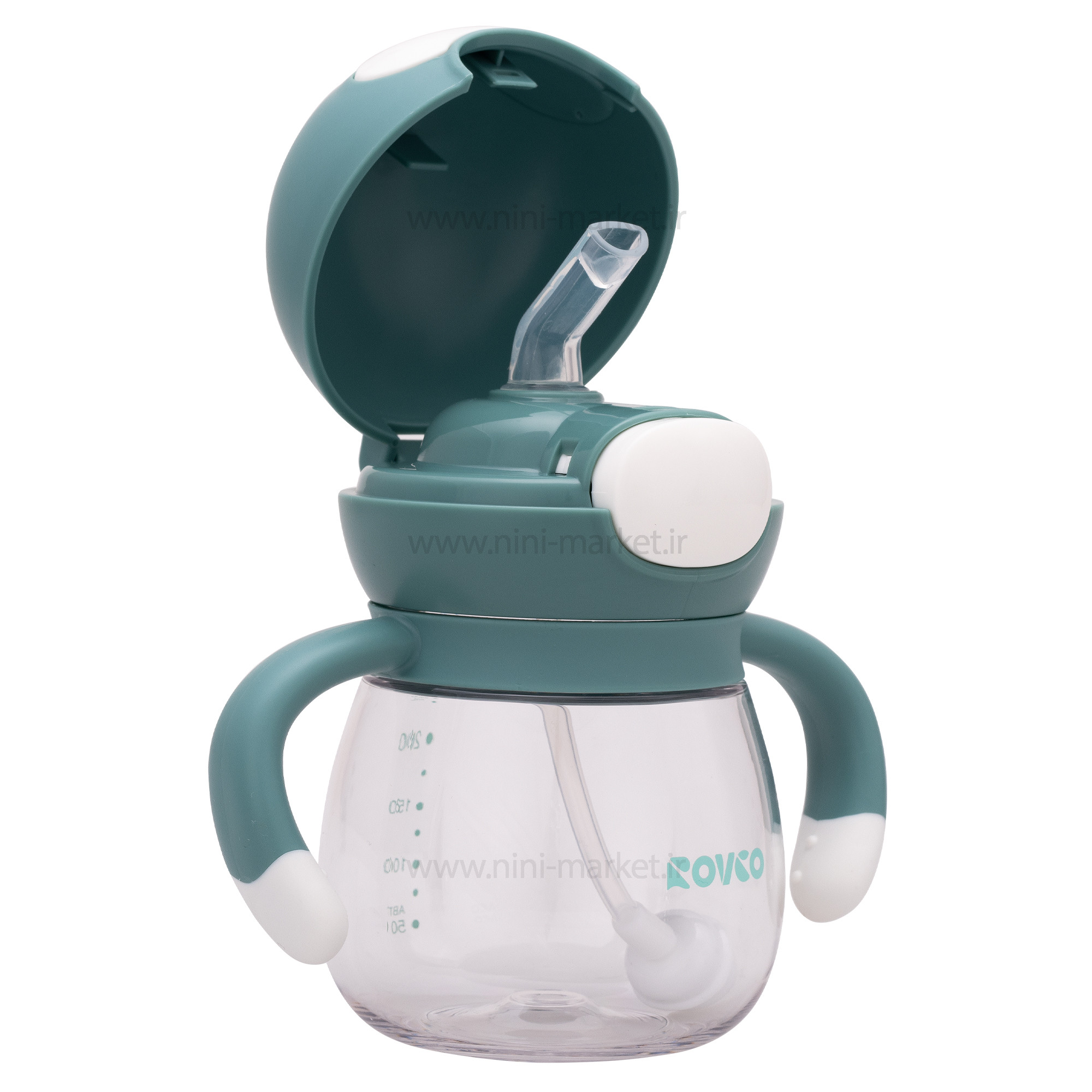 لیوان نی دار رنگ سبز Rovco دارای ظرفیت 240 میلی لیتر می باشد و به کودک آموزش می دهد که چگونه از لیوان استفاده کند و کمی از شیشه شیر جدا شود. کودک از لحظه ای که بدنیا می آید با مکیدن آشنایی دارد و به همین دلیل وقتی به سن 6 ماهگی و غذا خوردن می رسد استفاده از لیوان و جدایی از شیشه شیر برایش سخت می شود. لیوان های نی دار آموزشی بهترین وسیله برای آشنایی کودک با لیوان می باشد، شکل ظاهری آنها شبیه لیوان است اما کودک می تواند توسط مکیدن مایعات داخل آنها را بخورد. ایده آل برای سفرهای در حال حرکت یا کوتاه هم همراه خود برد. دسته به گونه ای طراحی شده است که برای محافظت از مچ کودک قابل چرخش باشد، دسته ارگونومیک آن به راحتی برای کودک قابل درک است، کاملاً با دست کودک مناسب است و برای کودک راحت است که از هر زاویه ای بنوشد. لوله گزش V شکل، نی نرم و سیلیکونی آن مانند پستانک کودک است. و با درب ضد نشت؛ حتی زمانی که فنجان به شدت برگردانده یا تکان داده شود، آب نمی ریزد.برای کنترل سرعت گاز بگیرید، برای جلوگیری از سرعت جریان خیلی سریع و خارج از آب است، معمولاً در حالت بسته برای جلوگیری از نشتی، طول نازل متناسب با دهان کودک، به طوری که نوزادان راحت تر استفاده کنند. ساخته شده از پلاستیک با کیفیت و سیلیکون سازگار با محیط زیست با کیفیت بالا، ایمن و سالم، می تواند با جوشاندن در دمای بالا استریل شود، بنابراین کودک شما می تواند آن را با خیال راحت بنوشد. به لطف دهانه گشاد، این لیوان نوشیدنی کودک یا کودک نوپا را می توان به سرعت تمیز و پر کرد و به شما در صرفه جویی در زمان کمک می کند. این لیوان ضد چکه است و نشتی ندارد. دارای نی 360 درجه که باعث نوشیدن راحت تر و تا آخرین قطره است، می باشد. همچنین دسته ها را می توان آزادانه چرخاند. این بر استفاده از کودک تأثیری نخواهد گذاشت. نی آب توپ گرانشی به کودک کمک می کند بدون توجه به نشستن، دراز کشیدن یا دراز کشیدن روی شکم از نوشیدن آب لذت ببرد، پایه پهن نوک پستان به بچه ها کمک می کند دهان خود را باز کنند و به راحتی میل کند. این نیز برای جلوگیری از تماس لب های بچه ها با کلاه در هنگام اتصال است. کودک می تواند یک مهر و موم قوی روی سیلیکون ایجاد کند تا به طور موثرتری مکیدن کند. روی بطری درجه بندی وجود دارد، شما می توانید به وضوح ببینید که کودک شما چقدر آب نوشیده است.