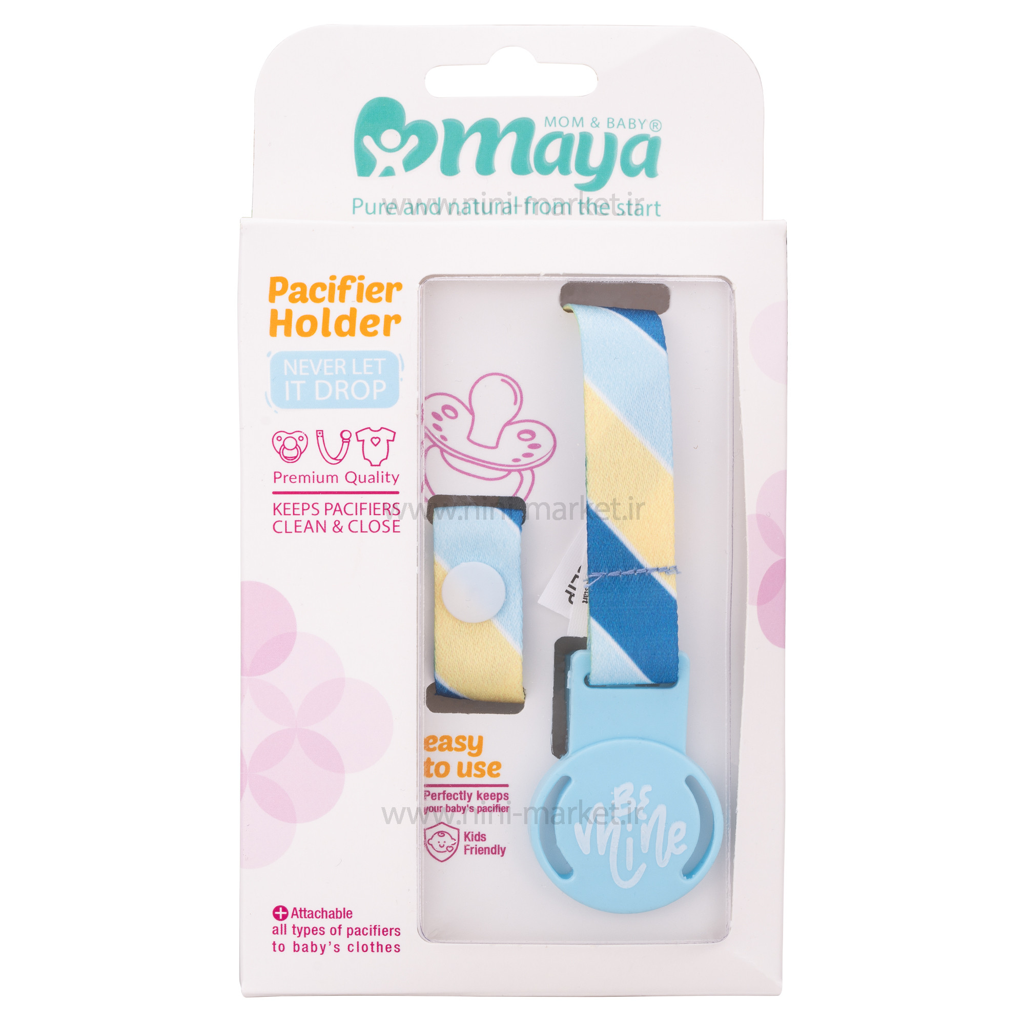 ویژگی بند پستانک پارچه ای طرح راه راه رنگ آبی زرد مایا Maya