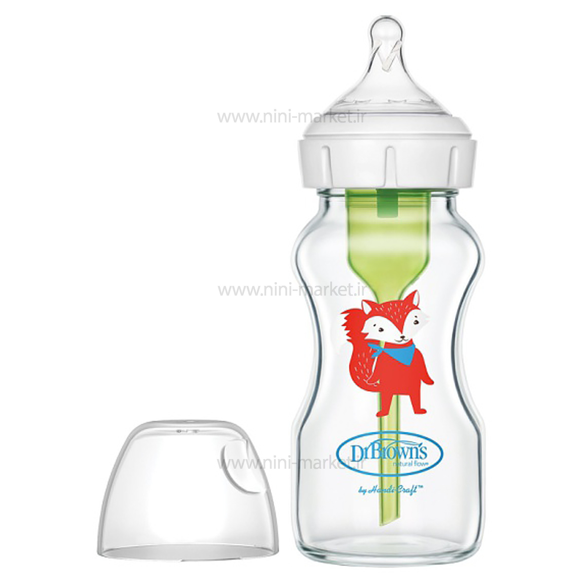 شیشه شیر پیرکس 270 میل آپشن پلاس طرح روباه دکتر براون DrBrowns یکی از بهترین شیشه شیرهای دنیا می باشد که آنتی کولیک و ضد دل درد است. جنس بدنه این شیشه از پلیپرولین است که ویتامین های موجود در شیر را به خود جذب نمیکند . در ساخت این محصول از هرگونه مواد مضر مانند BPA که به سلامت روده و معده نوزاد آسیب می رساند جلوگیری شده است . این محصول با سری سیلیکونی سه قطره است که به کاهش مشکل تغذیه کمک میکند . احتمالا شما هم برای خرید یک شیشه شیر خوب که تمام ویژگی های یک محصول با کیفیت را داشته باشد بسیار جستجو کرده اید. شیشه شیر دکتر براون یکی از محصولات بی نظیر است که توانسته انتخاب بسیاری از مادران جهان باشد. اگر به دنبال شیشه شیری هستید که از کیفیت و راحتی آن آگاه باشند میتوانید این شیشه شیر را به عنوان گزینه ی اصلی خود در نظر داشته باشید. شیشه شیر پیرکس عریض دکتر براون با جنس بدنه شیشه و سری سیلیکونی می تواند انتخابی از هر لحاظ منطقی به نظر آید. این محصول با داشتن لوله آنتی کولیک در خود از نفخ و کولیک معده جلوگیری می کند، با وجود این لوله احتمال هرگونه دل درد و نفخ در نوزاد از بین می رود. شیشه شیر عریض دکتر براون نسبت به شیشه های معمولی این برند کمی عریض تر است. طراحی گرد سری این سرشیشه ها به این منظور صورت گرفته تا نوزاد هیچ گونه تفاوتی بین آن و سینه مادر احساس نکند. شیشه شیرهای آپشن پلاس دکتر بروان با ایجاد تغییراتی نسبت به شیشه شیرهای آپشن جدید ترین تولید برند معتبر دکتر براون هستند. این تغییرات شامل تغییر در فرم سرشیشه به حالت پهن جهت طبیعی تر شدن و شبیه ترین حالت به سینه مادر، تغییر در فرم درب و درپوش شیشه شیر و امکان استفاده از شیشه شیر بدون نی داخلی می باشد. هم اکنون شما مشتریان محترم می توانید این محصول با کیفیت را از سایت نی نی مارکت سفارش داده که در اسرع وقت به دستتان می رسانیم .