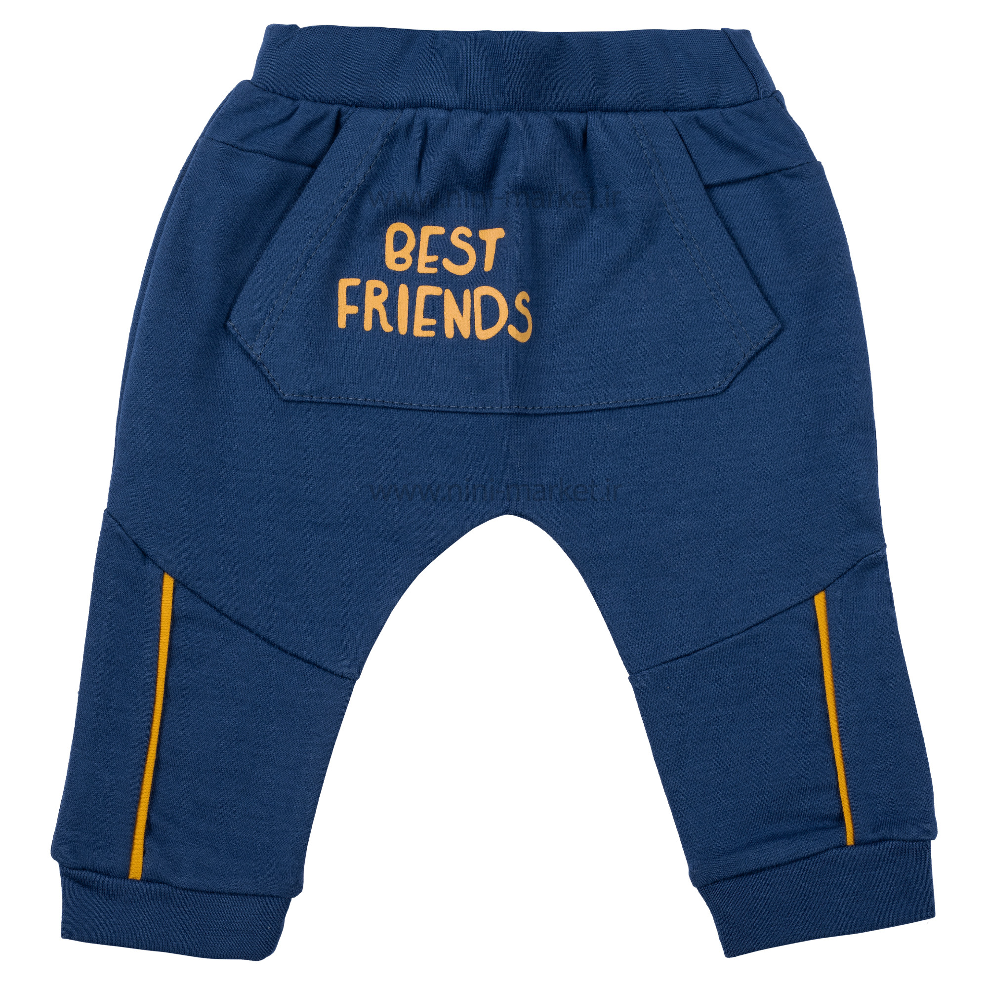 جنس شلوار طرح Friend رنگ سرمه اي نيلي Nili از الیاف کتان بوده و بسیار نرم و لطیف است و نوزاد با آن حس خوب دارد و در آن احساس راحتی میکند. الیاف از پنبه درجه یک تهیه شده است و مادران با خیال راحت میتوانند این شلوار را برای فرزند خود تهیه کنند. این شلوار به رنگ سرمه ای که یک جیب کانگوروئی که روی آن نوشته لاتین Best Friends چاپ شده است . در قسمت کمر شلوار یک کش پهن کار شده است که باعث می شود کمترین فشار ممکن به کمر بچه بیاید. همچنین دم پا این شلوار به صورت پاکتی است که کار را بسیار شکیل و جذاب کرده است .