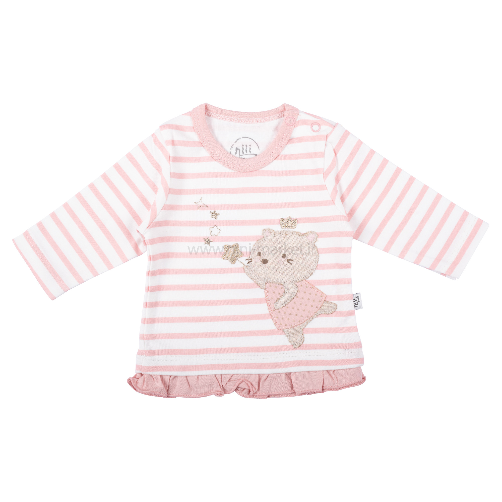 جنس بلوز آستين بلند طرح بالرین رنگ صورتی نيلي Nili از الیاف پنبه بوده و بسیار نرم و لطیف است و نوزاد با آن حس خوب دارد و در آن احساس راحتی می کند. الیاف از پنبه درجه یک تهیه شده است و مادران با خیال راحت میتوانند این محصول را برای فرزند خود تهیه کنند. رنگ بلوز آستین بلند طرح بالرین صورتی با راه راه های سفید می باشد که روی سینه لباس طرح یک گربه بالرین به صورت تک دوزی وگلدوزی درآمده که همچنین پایین لباس با چین سوزنی ریز تزئین شده است . در یک سمت سرشانه بلوز دو دکمه وجود دارد و مادر می تواند به راحتی آن را تن نوزاد کند .