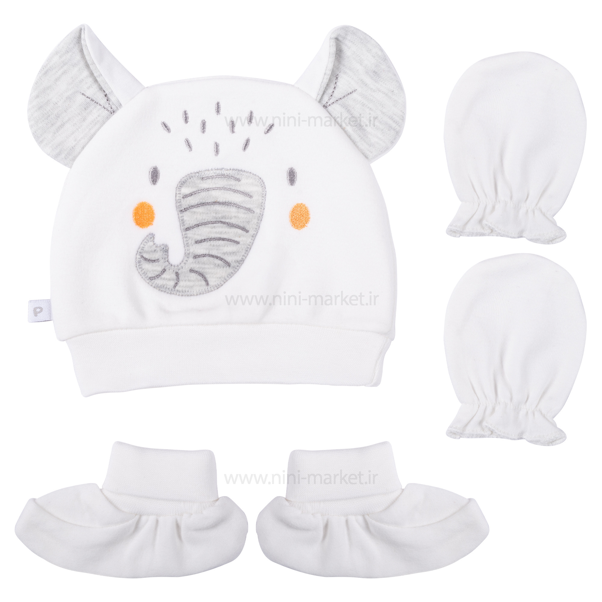 ست کلاه دستکش و پاپوش طرح فيل رنگ سفيد پاپو Papo