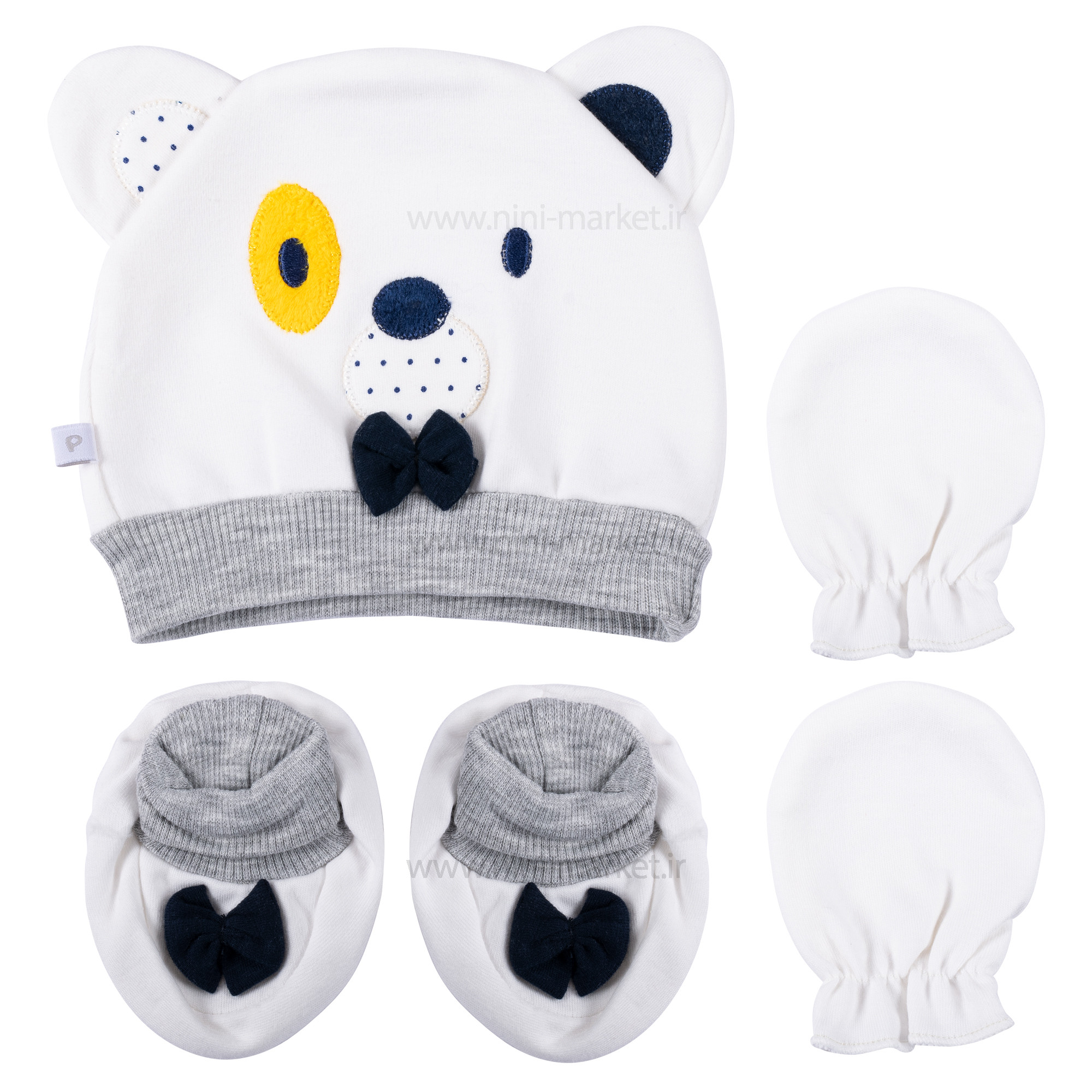 ست کلاه دستکش و پاپوش طرح خرس رنگ سفید پاپو Papo